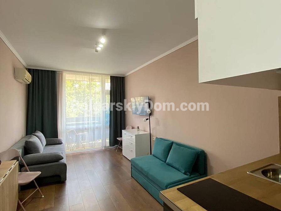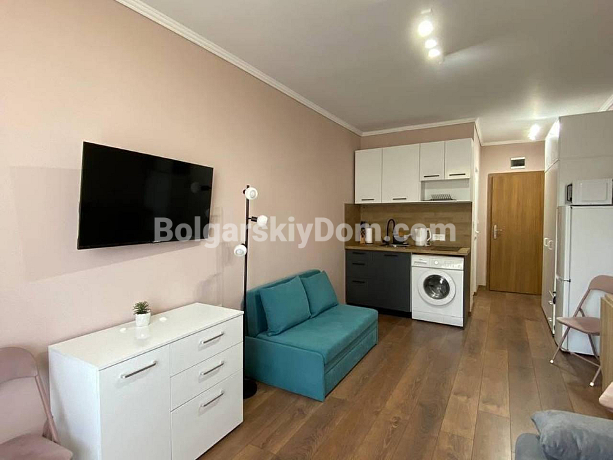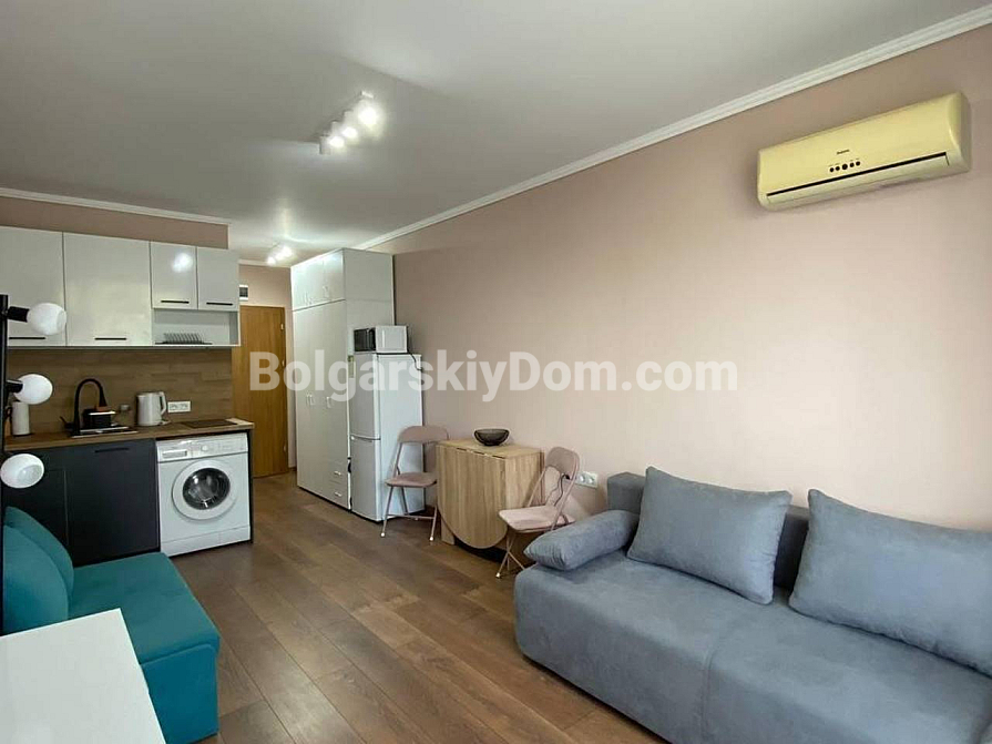 Шукаєте ідеальний компактний старт у Сонячному Березі, де не потрібно витрачати час на облаштування? Компанія Болгарський Дім представляє студію площею 31 кв.м, розташовану на п’ятому поверсі сімейного комплексу Гербер 2. Цей апартамент — готове рішення: він уже мебльований і повністю обладнаний технікою, тож ключі можна вручати просто в аеропорту. Планування зручне, а завдяки розташуванню на верхньому поверсі тут завжди тихо та світло. Ліфт, звісно, наявний.