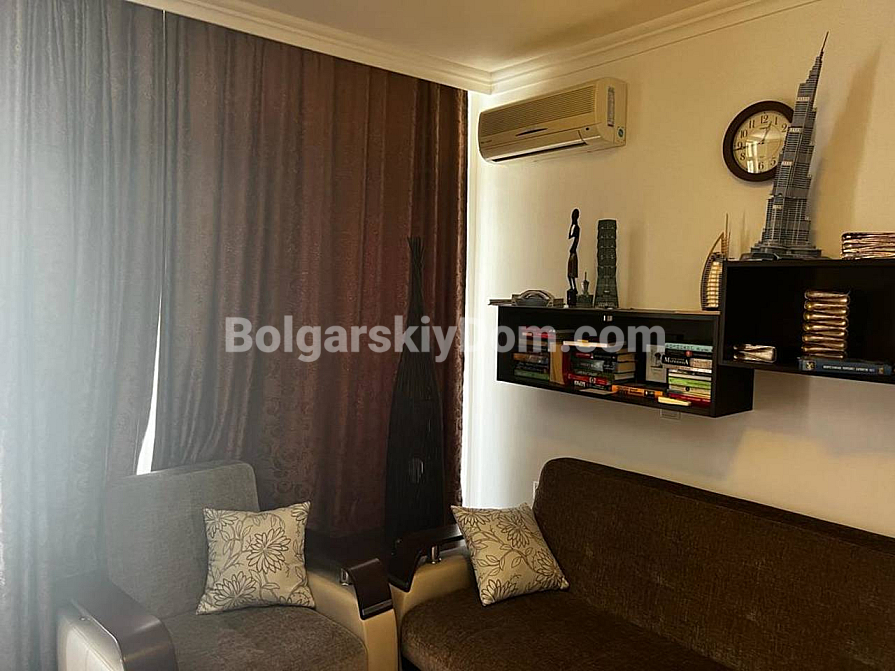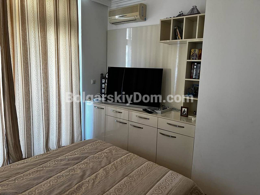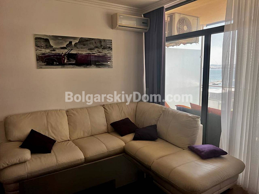 Зустрічайте розкішний двокімнатний апартамент на першій лінії в Святому Власі! Компанія Болгарський Дім представляє простору квартиру в комплексі Дольче Віта 2 з чистою площею 116 кв.м, розташовану на четвертому поверсі. Планування ідеальне для життя: дві спальні (одну з них облаштовано під затишний кабінет), ванна кімната з душем, окремий гостьовий туалет, а також велика вітальня, поєднана з кухнею. Головна перевага — з вітальні та тераси відкривається чудовий, захоплюючий краєвид на море! Квартира повністю мебльована, оснащена технікою та готова забезпечити комфортне проживання протягом усього року. Додатковий, дуже важливий бонус: на цьому ж поверсі є власна кладова площею 17 кв.м.