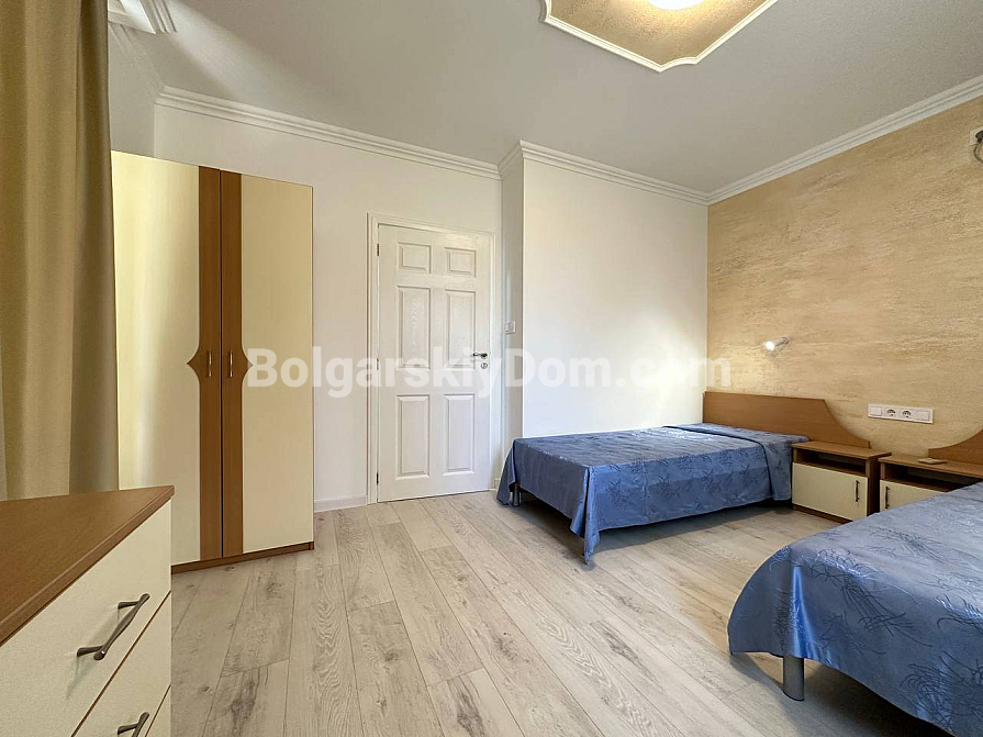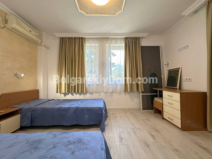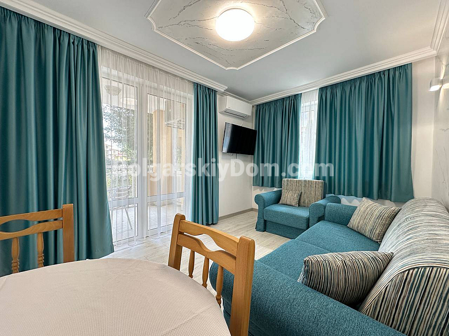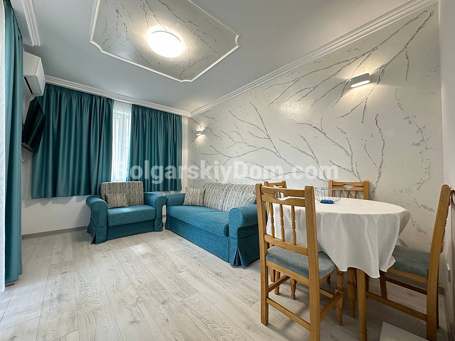 Компанія Болгарський Дім пропонує стильну двокімнатну квартиру площею 60 кв.м. у комплексі Sea Dreams! Апартамент вражає інтер’єром: простора вітальня оформлена в яскравих бірюзових тонах, доповнена декоративною стіною та обідньою зоною, а сучасна кухня оснащена повним набором техніки, включаючи духовку та пральну машину. Спальня світла та затишна, з великим вікном. Це повністю готове житло з функціональним плануванням, яке дозволяє одразу почати комфортне проживання. Кожна зона комплексу створює атмосферу фотозони. Поспішайте зарезервувати час для огляду!