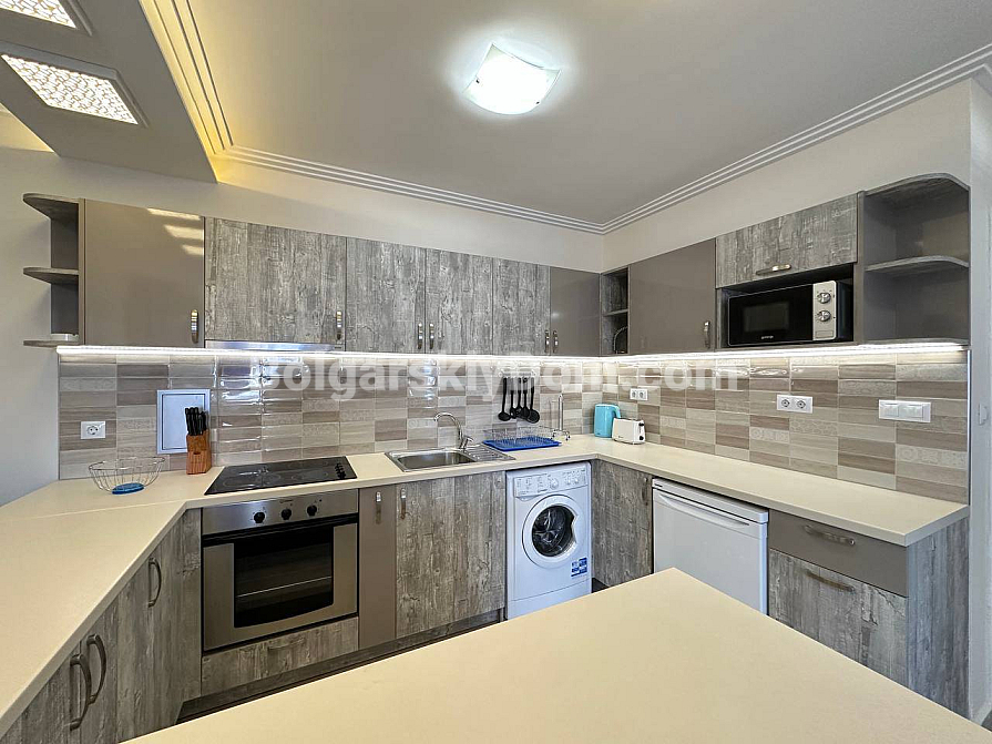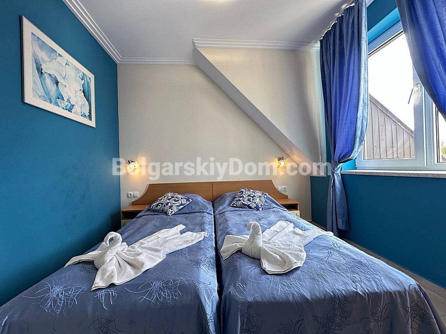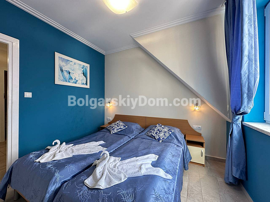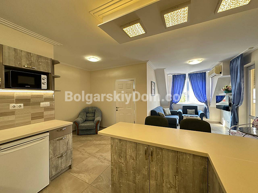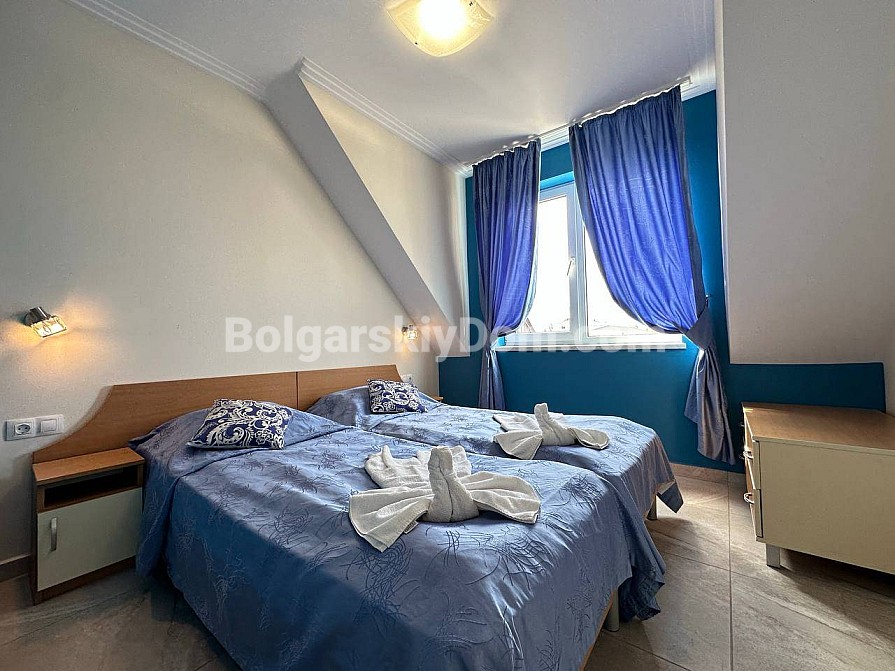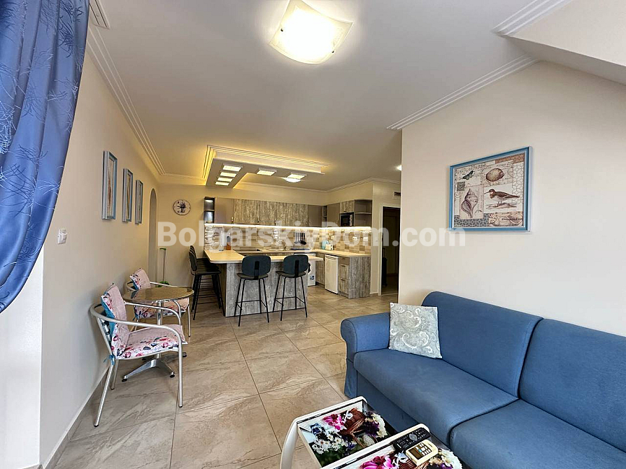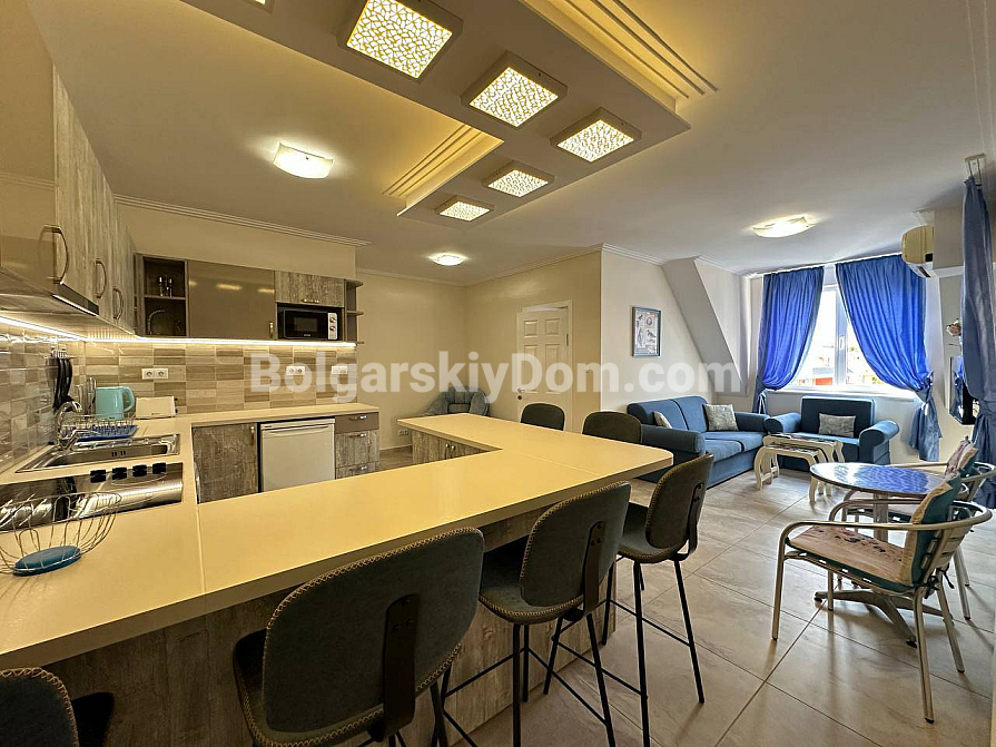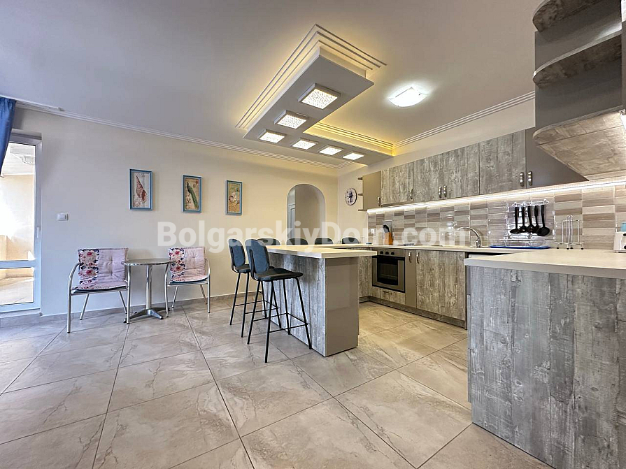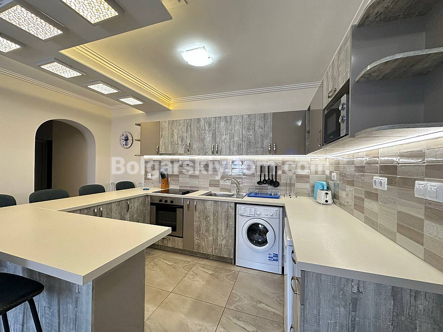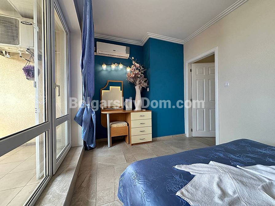 Забудьте про нудні інтер’єри — сьогодні компанія Болгарський Дім представляє дійсно яскраву та простору квартиру з дизайнерськими акцентами! На шостому, останньому поверсі комплексу Sea Dreams продається трикімнатний апартамент площею 85 кв.м., повністю готовий до заселення. Тут на вас чекає стильна кутова кухня з повним комплектом вбудованої техніки — від духовки та плити до мікрохвильової печі й пральної машини. Вітальня наповнена світлом завдяки великим вікнам і оформлена в затишних синіх тонах, а у спальнях є все необхідне для комфорту, включно з панорамним вікном і виходом на балкон у головній кімнаті. Навіть ванна кімната виділяється яскравими сучасними акцентами та скляною раковиною. Відмінна ціна й ідеальний житловий стан.