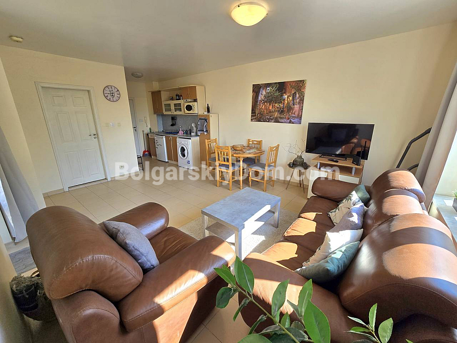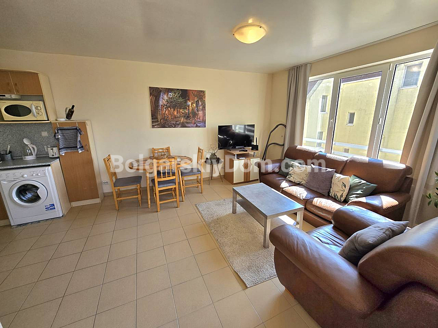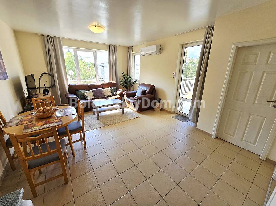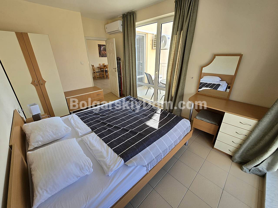 Пропонуємо на продаж відмінну двокімнатну квартиру в сучасному житловому комплексі Сі Дрімс, розташованому в одному з найбільш затребуваних районів курорту Сонячний берег. Метраж - 65 кв.метрів, четвертий (передостанній) поверх. Світла вітальня з окремою кухонною зоною в ніші і обідньою зоною, окрема спальня з двома великими вікнами, санвузол з душкабіною і затишна тераса з зоною відпочинку — ідеальне місце для ранкової кави або вечора з келихом вина. Квартира продається з меблями і побутовою технікою - можна заїхати і жити відразу! Стан відмінний, працює ліфт, є окрема партида на електроенергію.