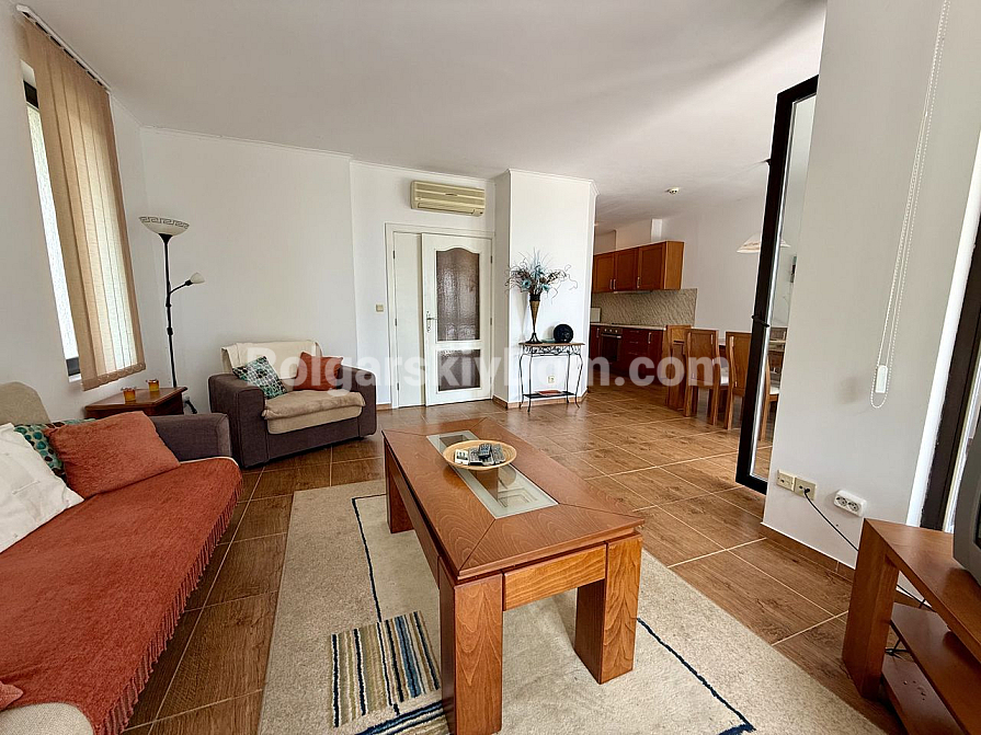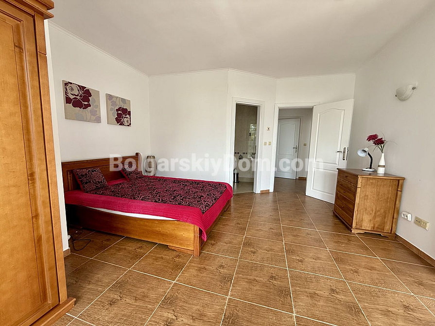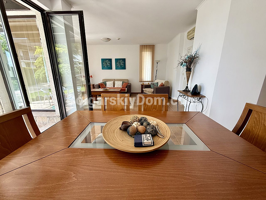Забудьте про тісні курортні апартаменти — сьогодні ми пропонуємо житло, яке за масштабом можна порівняти із заміським будинком. Компанія Болгарський Дім представляє дуже рідкісний лот — дворівневий апартамент (мезонет) площею 133 кв.м у комплексі Bay View Villas. Розташований на перших двох поверхах, цей апартамент має Акт 16 і відрізняється продуманим, майже заміським плануванням: дві спальні, простора вітальня, дві ванні кімнати плюс окремий туалет, підсобне приміщення та кладова. Найголовніше — квартира продається з меблями та технікою й має власну веранду з виходом у двір.