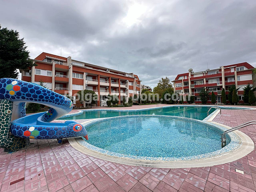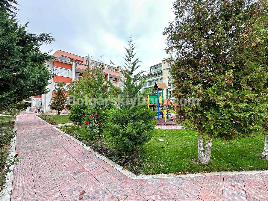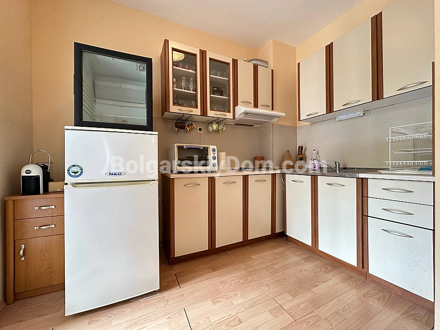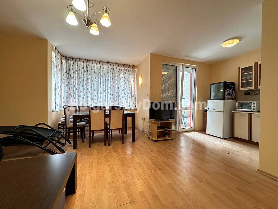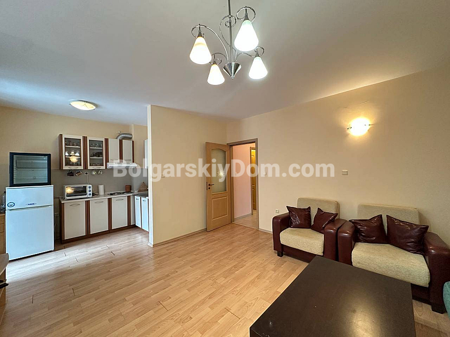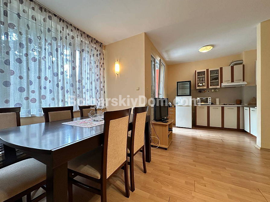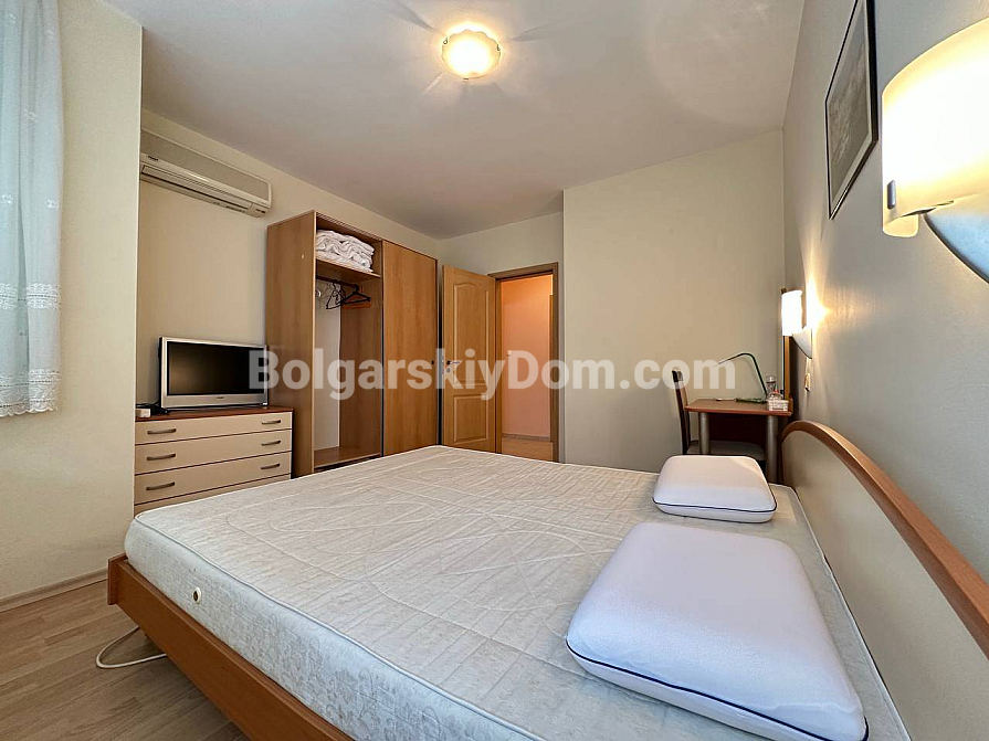 Дозвольте собі одразу зануритися в курортне життя, оминувши етап ремонту та облаштування. Компанія Болгарський Дім представляє простору та затишну квартиру, яка продається в ідеальному стані — повністю мебльованою та готовою до проживання. Планування поєднує велику кухню, світлу вітальню та зону відпочинку. Кухня зі світлими фасадами повністю обладнана технікою — від холодильника й плити до кавомашини та тостера. У просторій вітальні розташований великий диван і обідня зона. Спальня виконана у спокійних тонах і має зручне двоспальне ліжко та письмовий стіл, що додає функціональності простору. Загальна площа — 75 кв.м.