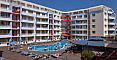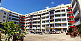 Комплекс Central Plaza повністю виправдовує свою назву, адже розташований у самому центрі курорту Сонячний Берег — лише за 500 метрів від моря. У пішій доступності є вся необхідна інфраструктура: популярні заклади (ресторан і супермаркет «Джанні»), центральна пішохідна вулиця з готелем «Кубань», ринок, нічні клуби та казино. Для тих, хто планує постійне проживання, поруч є медичний центр, дитячий садок і школа. Комплекс пропонує мешканцям комфорт: басейн із баром, рецепцію, паркінг і охорону. Річна такса обслуговування становить лише 10 євро за кв.м.