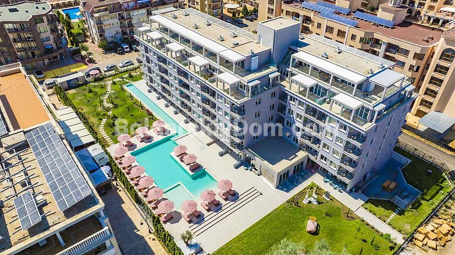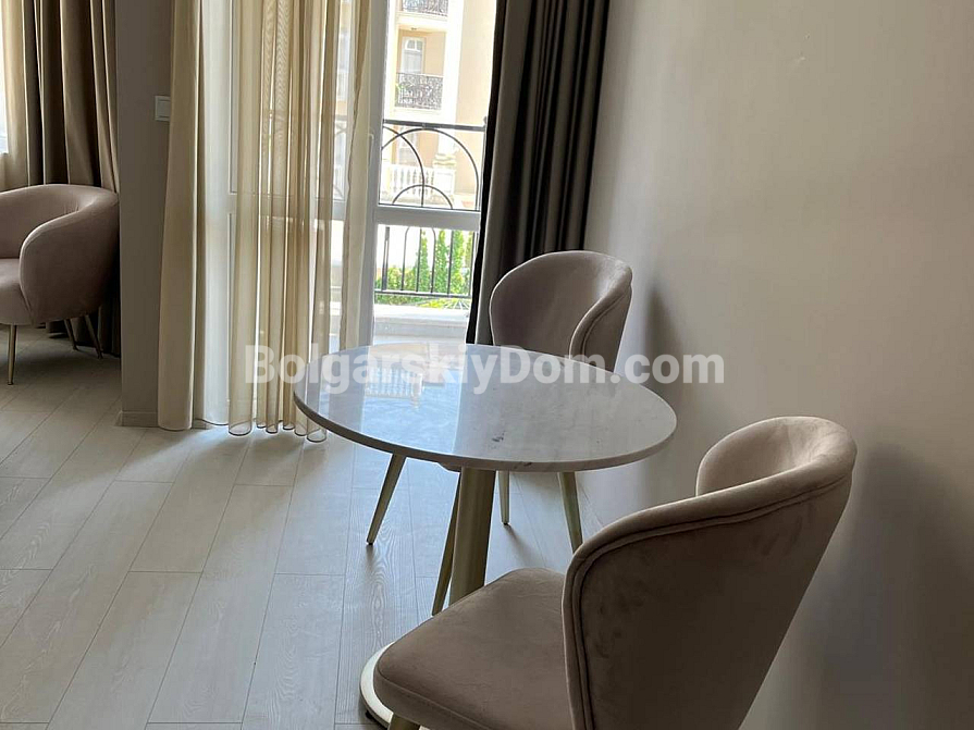 Інвестуйте в елегантний, повністю готовий апартамент у самому серці курортного життя! Компанія Болгарський Дім пропонує до продажу розкішну студію площею 50 кв.м у комплексі J'adore Secret Gardens. Максимальна ліквідність! Апартамент розташований на 3-му поверсі (з 7) і має стильний, просторий інтер’єр. Студія повністю оснащена високоякісними меблями та всією необхідною технікою й деталями інтер’єру, що повністю усуває для вас додаткові витрати на облаштування. З тераси відкривається приємний вид на басейн комплексу.
