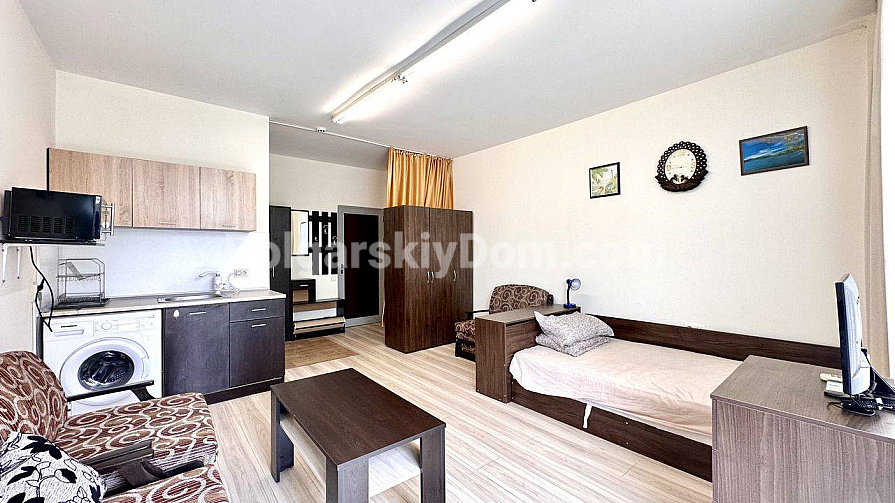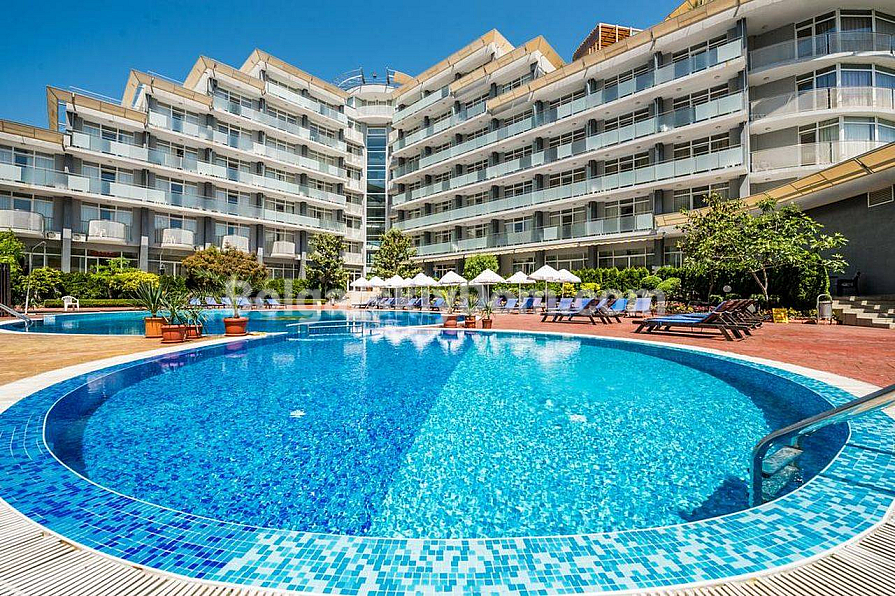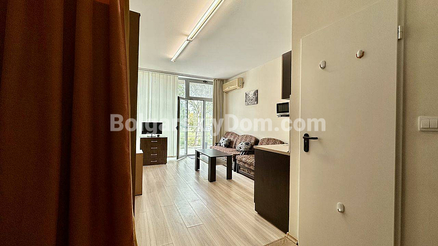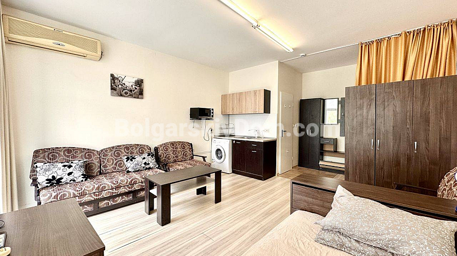 Комплекс Perla має чудову локацію — лише 300 метрів до моря та широкого піщаного пляжу. Близькість до центральної інфраструктури курорту робить цей комплекс дуже популярним серед туристів. Як і більшість комплексів такого типу, він має басейн, охоронювану територію та низку додаткових зручностей: кафе, паркінг, дитячий майданчик тощо. Невелика ціна та компактна площа при такій близькості до моря роблять цю студію винятково ліквідною пропозицією. Річна такса обслуговування становить 720 євро.