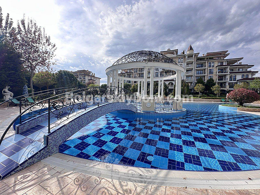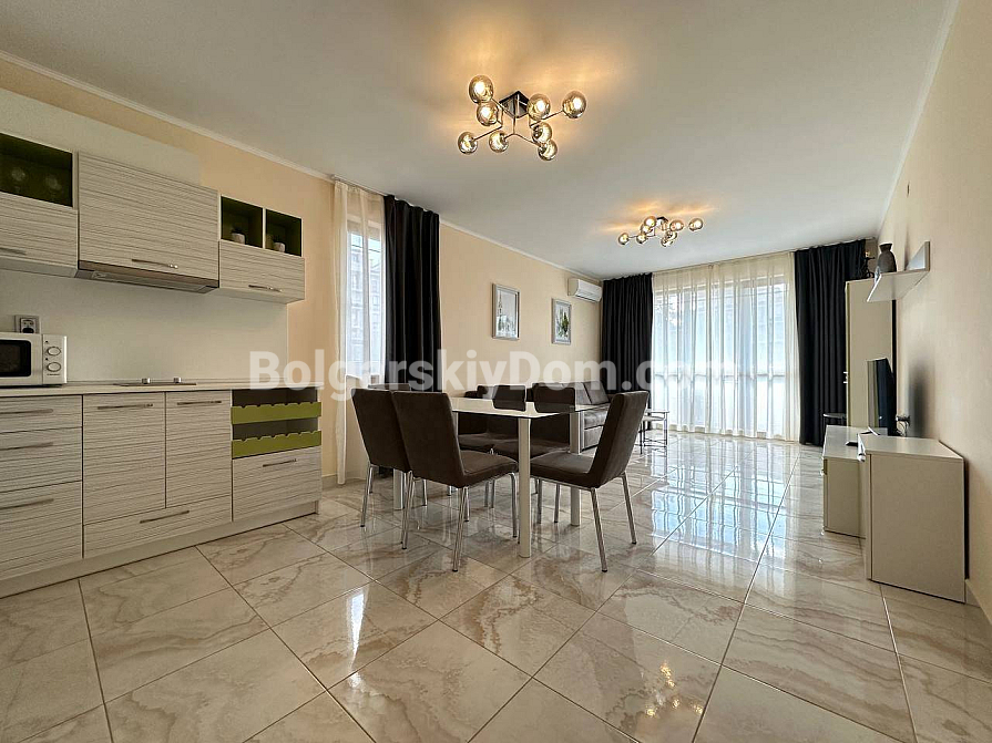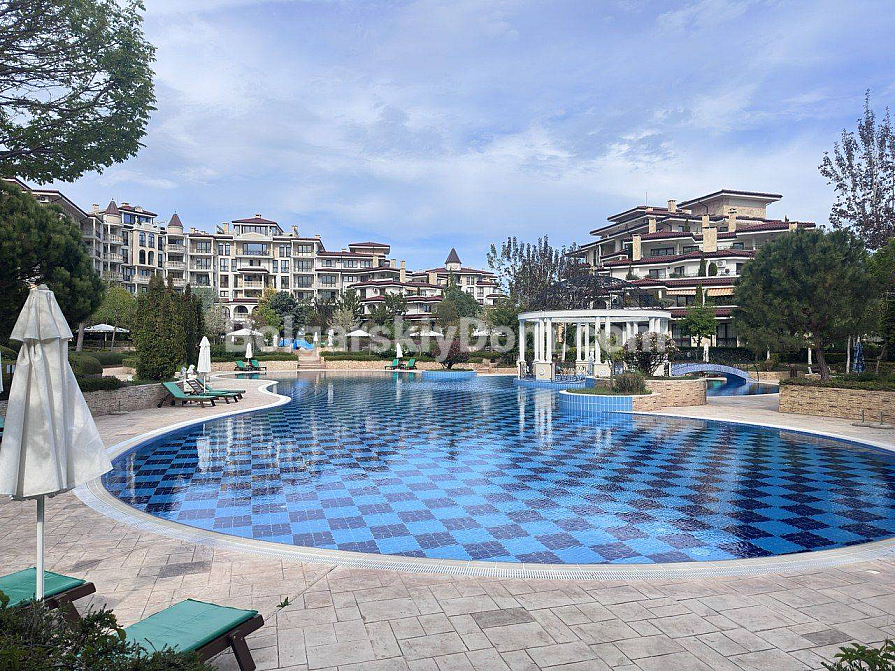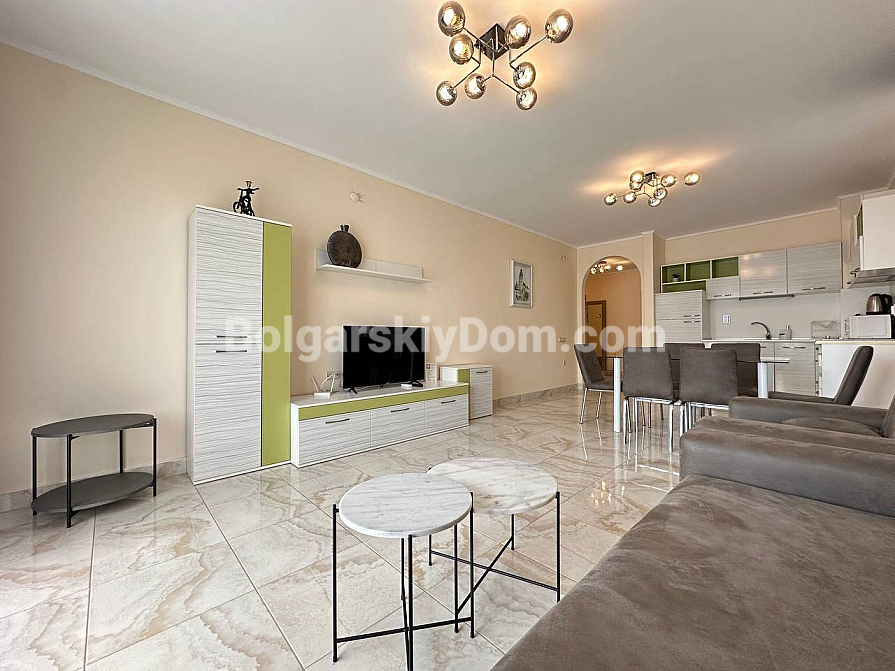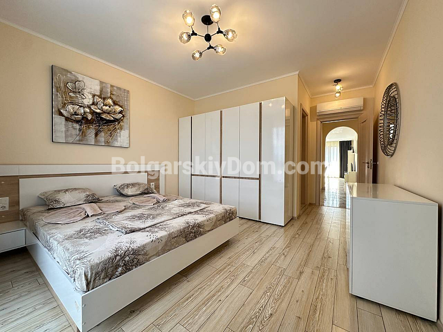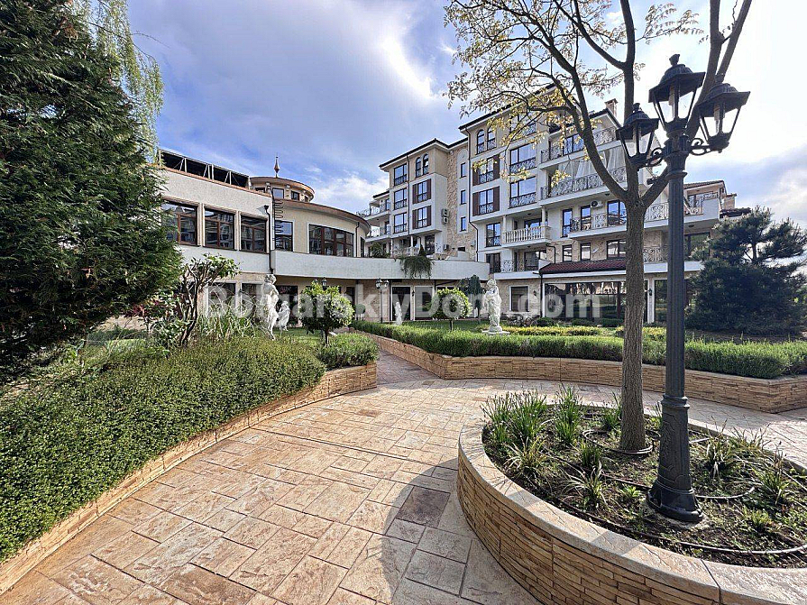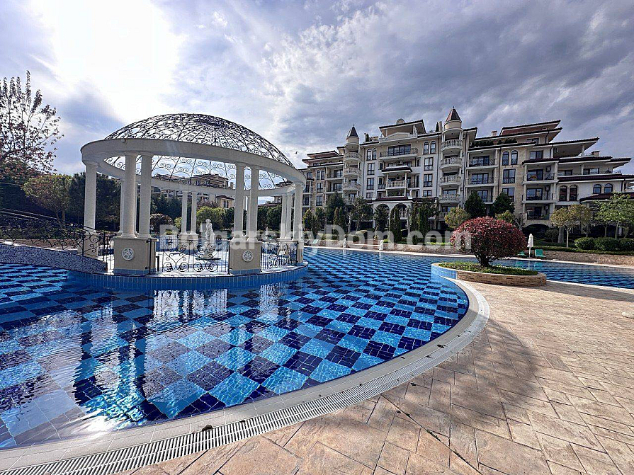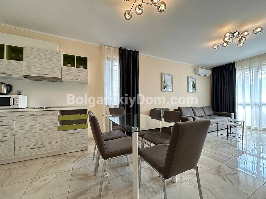 Комплекс Посейдон розташований лише за 300 метрів від моря та пропонує розвинену, люксову інфраструктуру. Апартамент знаходиться на 2-му поверсі (з 5) і має низьку річну таксу обслуговування — лише 12 євро за кв.м. Це рідкісне поєднання великої площі, ексклюзивного дизайну та повної готовності до заселення.
