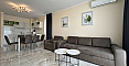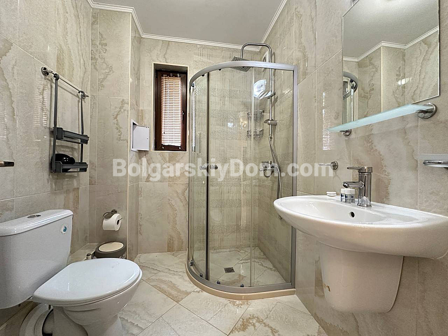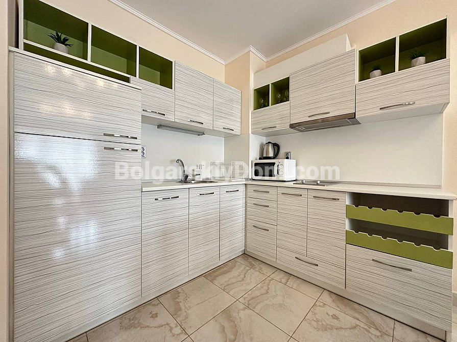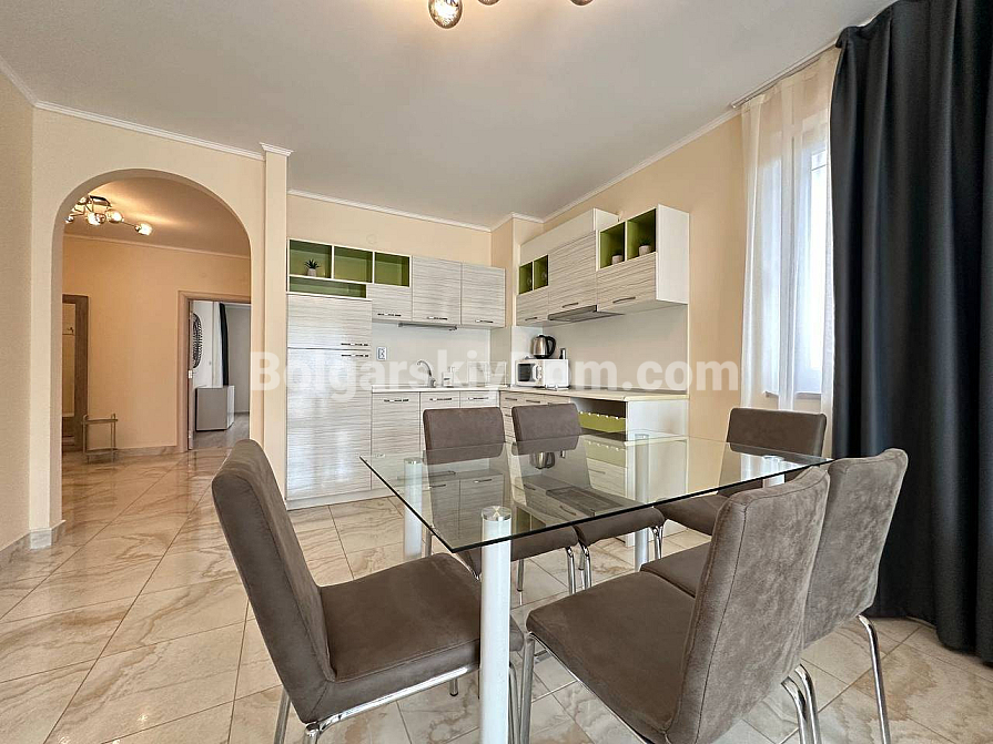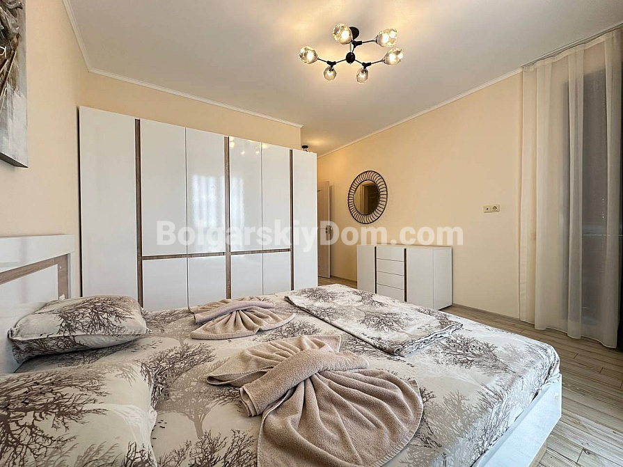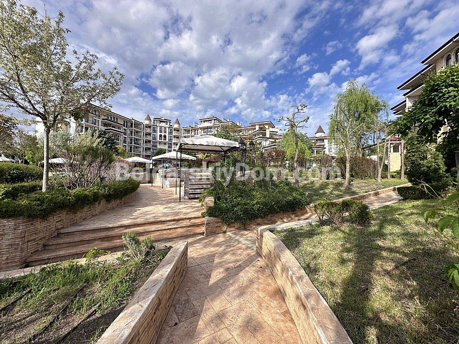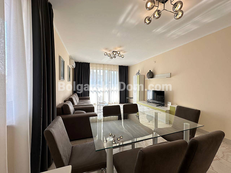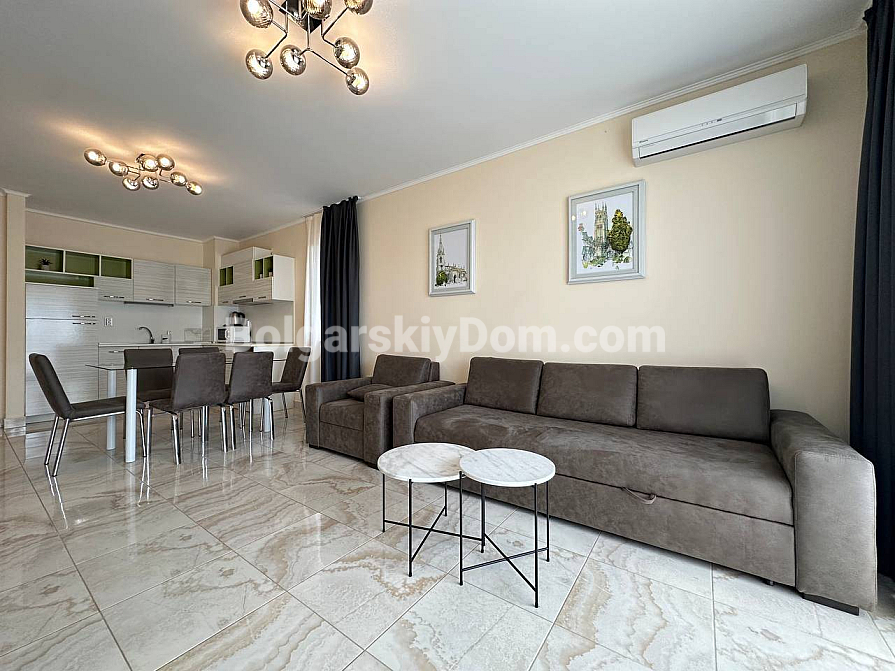 Комплекс Посейдон розташований лише за 300 метрів від моря та пропонує розвинену, люксову інфраструктуру. Апартамент знаходиться на 2-му поверсі (з 5) і має низьку річну таксу обслуговування — лише 12 євро за кв.м. Це рідкісне поєднання великої площі, ексклюзивного дизайну та повної готовності до заселення.