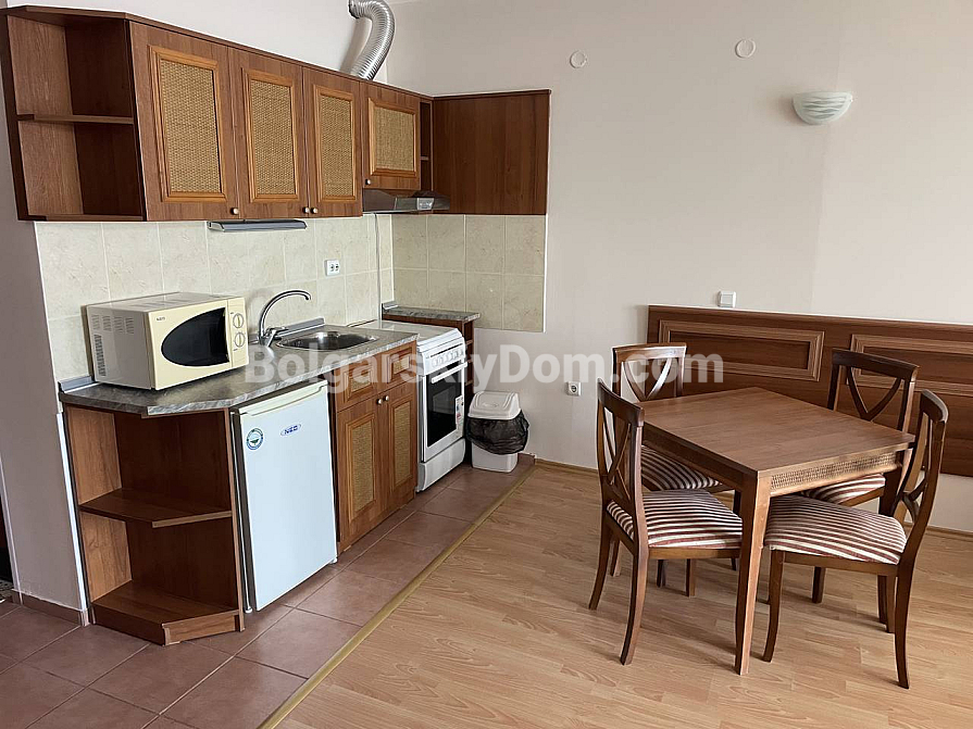 Комплекс розташований у тихому та спокійному районі між Святим Власом і Єленіте та, окрім традиційних зручностей, має прямий доступ до пляжу й безліч опцій: рецепцію, басейн із дитячою зоною, дворівневий лобі-бар, ресторан із панорамною терасою та, звісно, СПА-комплекс для максимального відпочинку. Цілодобова охорона та ліфт забезпечують комфорт і спокій. Відстань до пляжу – 100 метрів, такса підтримки – 12 євро за кв.м.