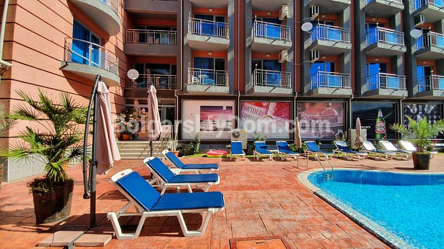 Какао Резиденс — це сучасний, затишний комплекс закритого типу, розташований у південній частині Сонячного Берега. Доглянута, озеленена територія спроєктована так, щоб кожен мешканець почувався комфортно. Комплекс пропонує повний спектр зручностей: басейн для дорослих із дитячою секцією, сучасні шезлонги та парасольки, цілорічну охорону, рецепцію, ресторан, бар біля басейну, сауну, послуги масажу, салон краси, тренажерний зал і продуктовий магазин у будівлі. Унікальність комплексу — у його розташуванні: поруч магазини, супермаркети, кафе, міні-аквапарк, а до старовинного міста Несебр лише 1 км. Регулярно курсує громадський транспорт до центру Сонячного Берега, Святого Власа та Єленіте. Річна такса обслуговування становить 10 євро за кв.м.