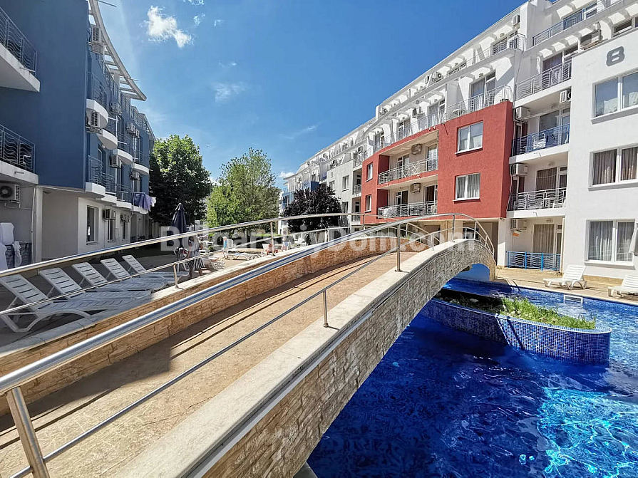 Комплекс Sunny Day 3 має зручне розташування — лише 900 метрів до піщаних пляжів і 500 метрів до центру курорту. ЖК має доглянуту зелену територію, створену для повноцінного відпочинку. До послуг мешканців великий басейн із зонами для засмаги, дитячий майданчик, кафе, паркінг та охорона. Комплекс введений в експлуатацію (Акт 16), повністю заселений і підходить для цілорічного проживання завдяки роботі керуючої компанії та вигідним комунальним тарифам. Річна такса — 580 євро, фіксована і не залежить від площі житла.