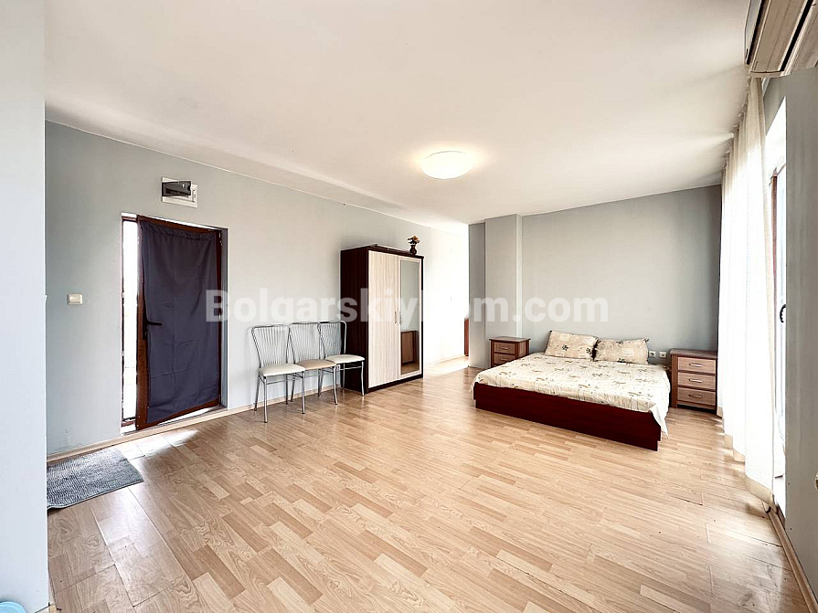 Топове за всіма параметрами житло для відпочинку та проживання біля моря: світла, простора студія площею 72 кв.м у комплексі Амадеус 11! Справжня перлина цього апартаменту, розташованого на 6-му поверсі, — це величезна тераса площею 40 кв.м із садовими меблями, яка стане вашою особистою зоною для ранкової кави та вечірнього відпочинку на свіжому повітрі. Простору достатньо як для господарських потреб, так і для невеликих вечірок. Інтер’єр продумано зонований: затишна спальня з великою двоспальною кроваттю та комфортна зона відпочинку біля панорамного вікна з диваном і телевізором. Квартира повністю мебльована, включає компактну, але функціональну кухню (робоча поверхня, витяжка, холодильник) і повністю обладнану ванну кімнату з пральною машиною та бойлером. Це доглянуте житло готове прийняти нових власників для комфортного відпочинку або вигідної оренди.
