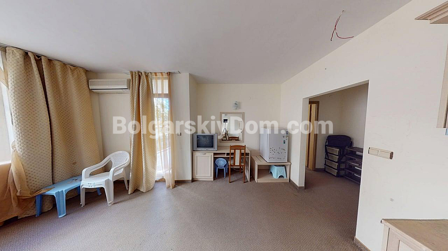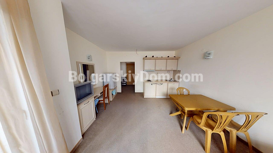 Гарячий ексклюзив від АН Болгарський Дім! Світлий, кутовий апартамент із великою терасою у самому центрі Сонячного Берега! У продажу двокімнатна квартира (1+1) площею 63 кв.м у сучасному житловому комплексі Авалон. Ця нерухомість має низку переваг: квартира дуже світла, має велику, затишну терасу, закриту з двох боків. Апартамент розташований на другому поверсі, продається в охайному стані, повністю з меблями та технікою. Завдяки привабливій ціні та розташуванню всього за 350 метрів від моря, цей об’єкт є чудовою інвестицією. Напишіть агенту, щоб дізнатися більше деталей!