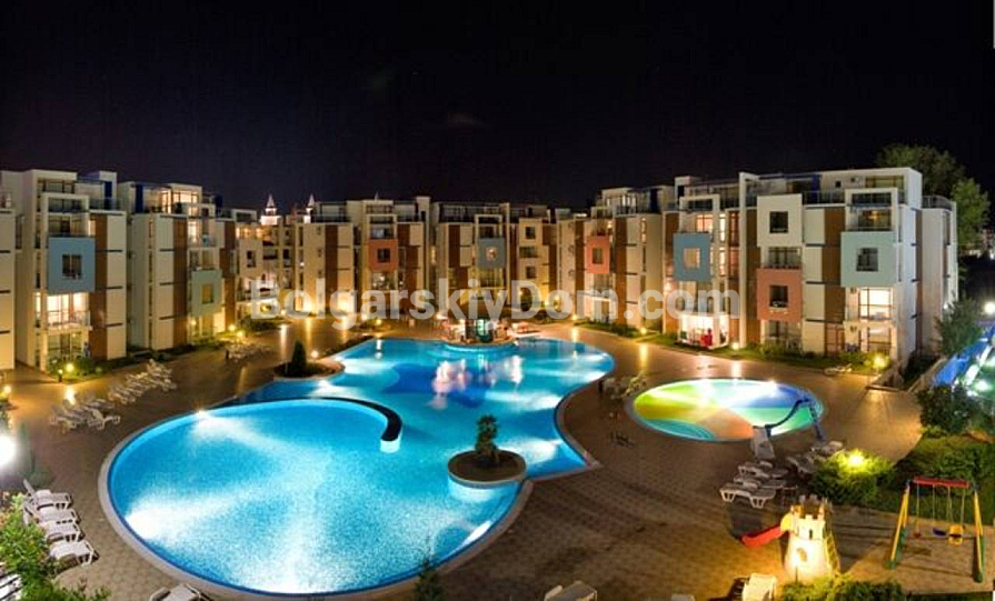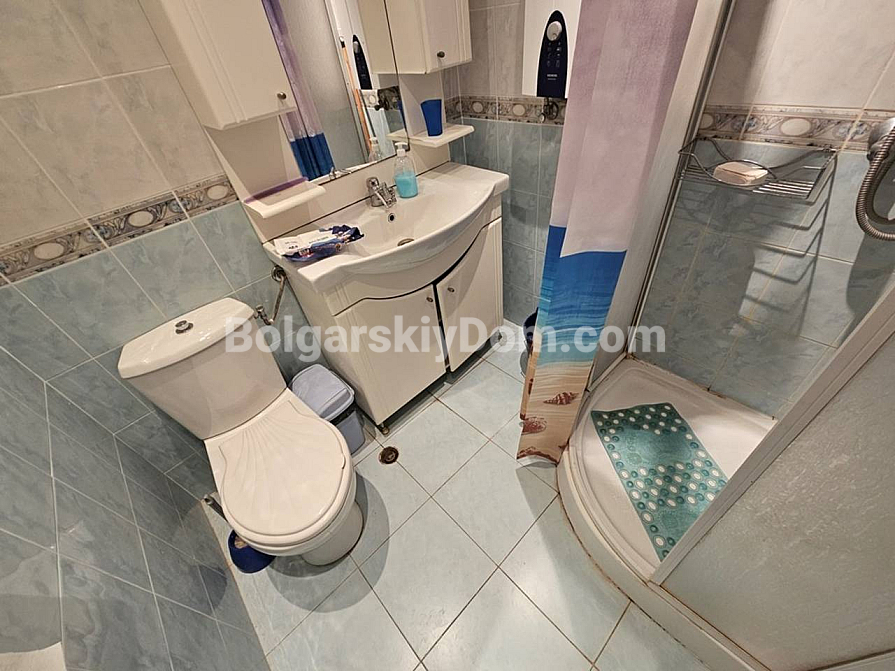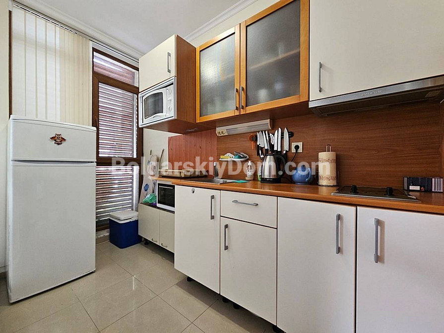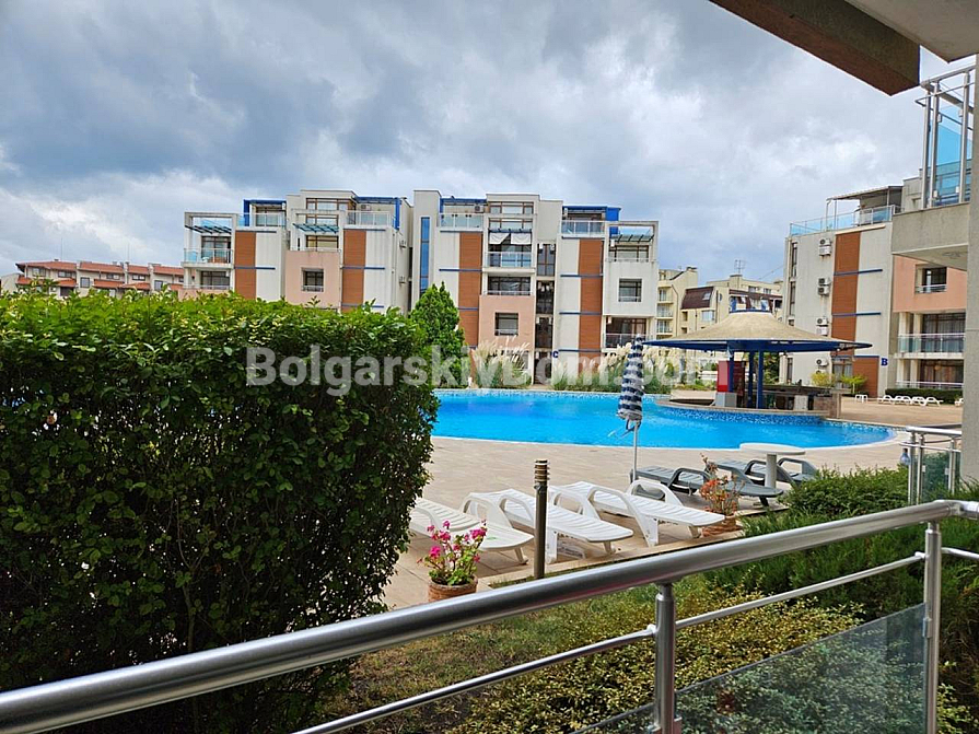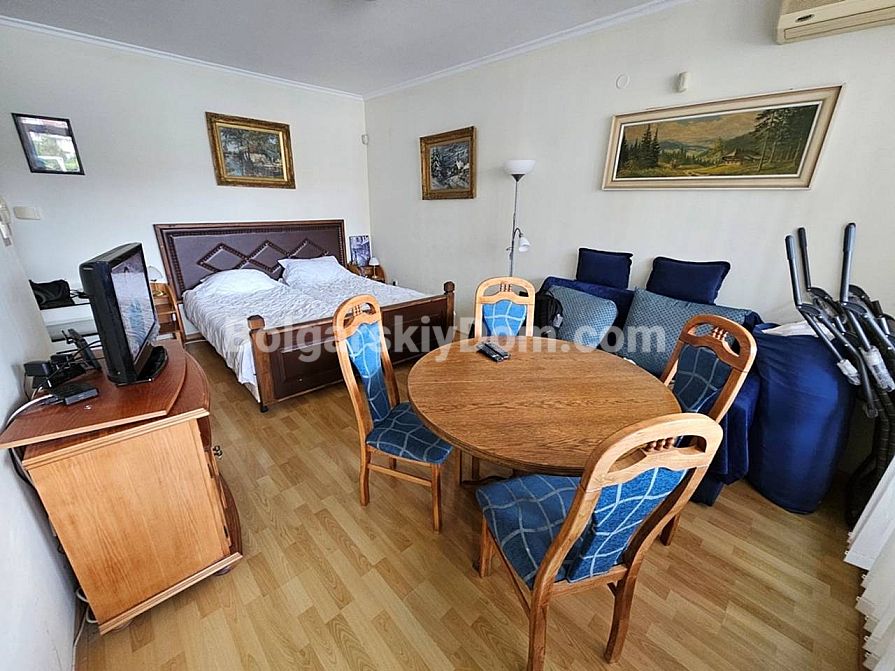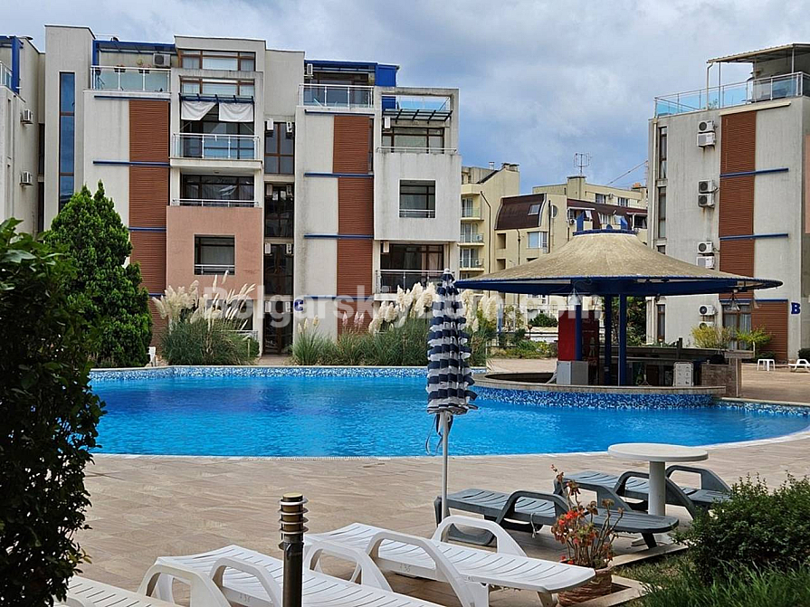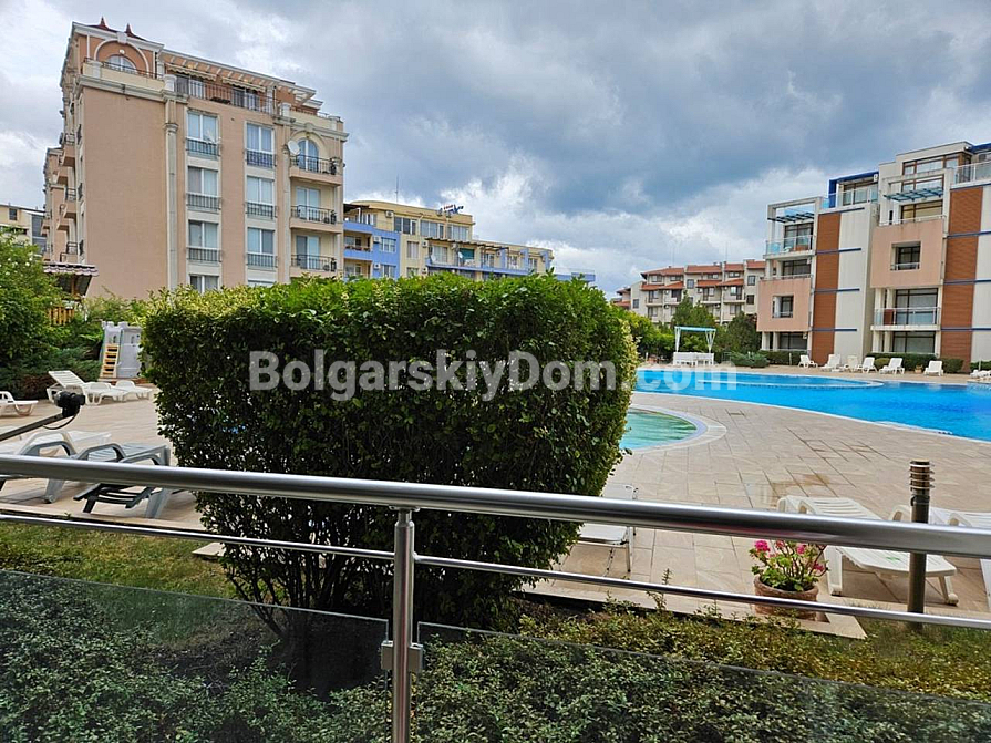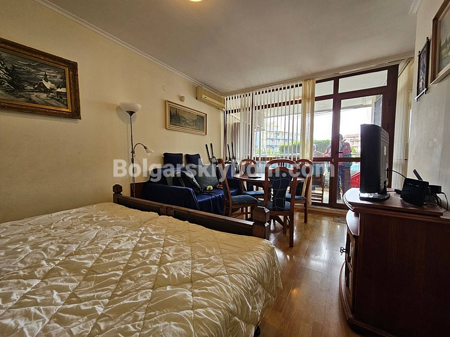 Сенсаційне поповнення від компанії Болгарський Дім! Простора квартира на Сонячному Березі з власною кладовкою та видом на басейн! У продажу просторий однокімнатний апартамент загальною площею 52 кв.м (48.62 кв.м + 3.40 кв.м кладовка) у комплексі Сан Сіті 1. Головна перевага цієї нерухомості — наявність власного підвального приміщення/кладовки та зручне розташування на першому поверсі з видом на басейн. Квартира повністю мебльована та обладнана технікою, включно з пральною машиною та кондиціонером. Студія простора, має окрему кухонну зону, тобто за плануванням є повноцінною однокімнатною квартирою. На вікнах встановлені зовнішні жалюзі для тіні та приватності. До пляжу лише 5 хвилин ходьби (близько 300 метрів).