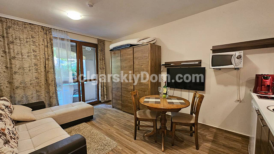 Ексклюзивна пропозиція вже в каталозі агенції Болгарський Дім! Стильна квартира з власним виходом у сад у престижному ком’юніті! Продається затишна студія площею 37 кв.м у комплексі Cascadas — одному з топових сімейних комплексів на Сонячному Березі. Квартира має рідкісну та важливу перевагу: власну терасу з виходом безпосередньо у зелений сад, оскільки розташована на першому поверсі. Нерухомість повністю мебльована та оснащена всім необхідним (від дивана до кавоварки). Інтер’єр виконаний у сучасному стилі з теплими дерев’яними акцентами. Об’єкт повністю готовий до комфортного проживання або дохідної оренди.