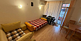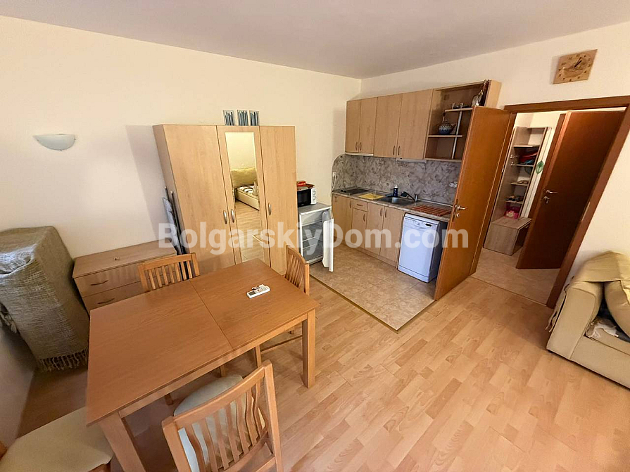 Комплекс, у якому розташована квартира, знаходиться в одному з найпопулярніших районів курорту Сонячний Берег і має закриту, доглянуту територію та власний басейн для відпочинку. Ключова перевага локації — пішохідна доступність до всієї необхідної інфраструктури та моря: лише 50 метрів до пляжної лінії та не більше десяти хвилин спокійної ходи до золотого піску. У безпосередній близькості розташований відомий супермаркет «Младост», який пропонує широкий вибір продуктів за демократичними цінами — це особливо цінно для постійного проживання. Низька такса обслуговування, що становить лише 270 € на рік, є одним із найвагоміших аргументів на користь цієї пропозиції, роблячи її ідеальним варіантом не лише для відпочинку, а й для цілорічного проживання з мінімальними витратами.