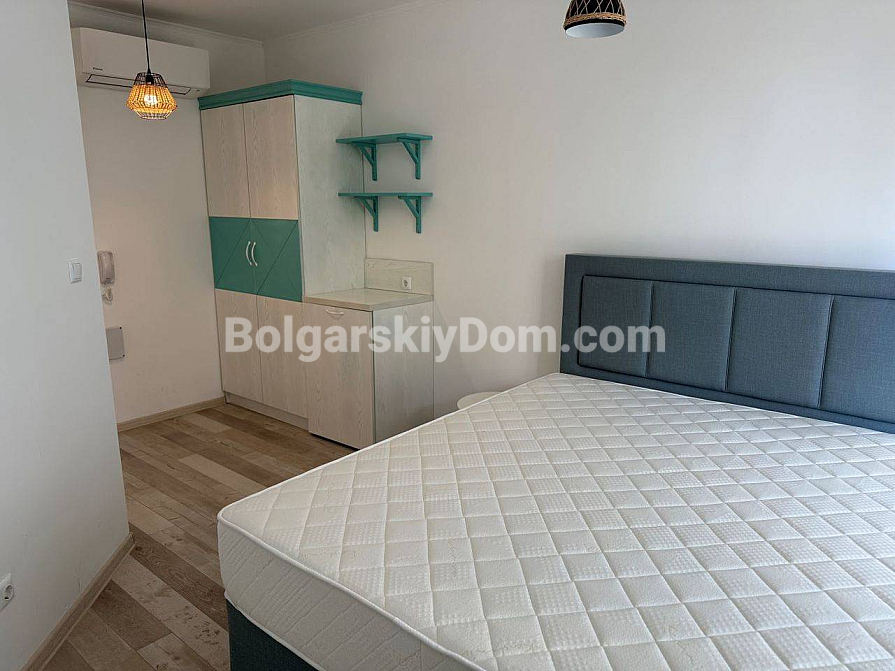 У каталозі Болгарського Дому з’явилася витончена студія в бутик-комплексі Izida Palace 2 — ідеальний варіант для тих, хто цінує комфорт і можливість проживання протягом усього року. Апартамент загальною площею 30,76 кв.м, розташований на другому поверсі, вже має стильні меблі, що дозволяє відразу насолоджуватися відпочинком або здавати житло в оренду. Студія грамотно спланована: простора вітальня поєднана зі спальною зоною, є повністю обладнана ванна кімната, а з вікон відкривається приємний вигляд на зелений тенісний корт. Незважаючи на компактні розміри, квартира укомплектована всім необхідним — від холодильника й телевізора до кондиціонера.