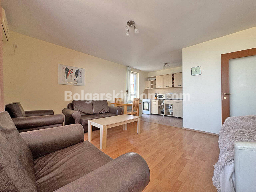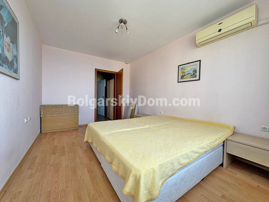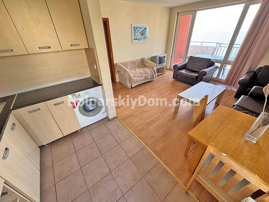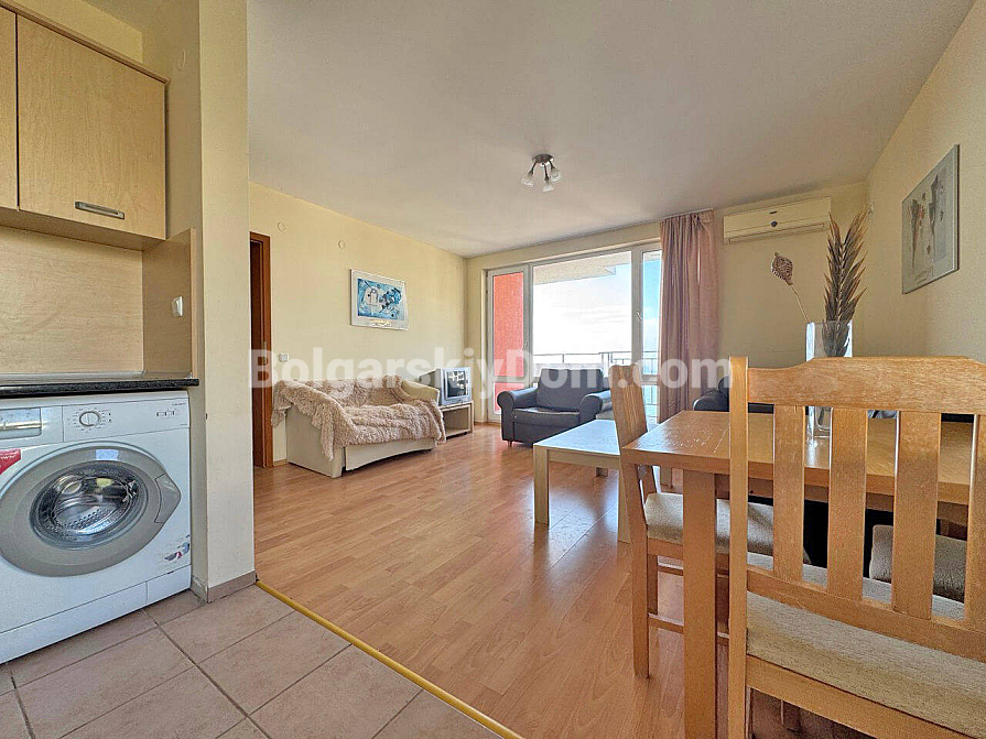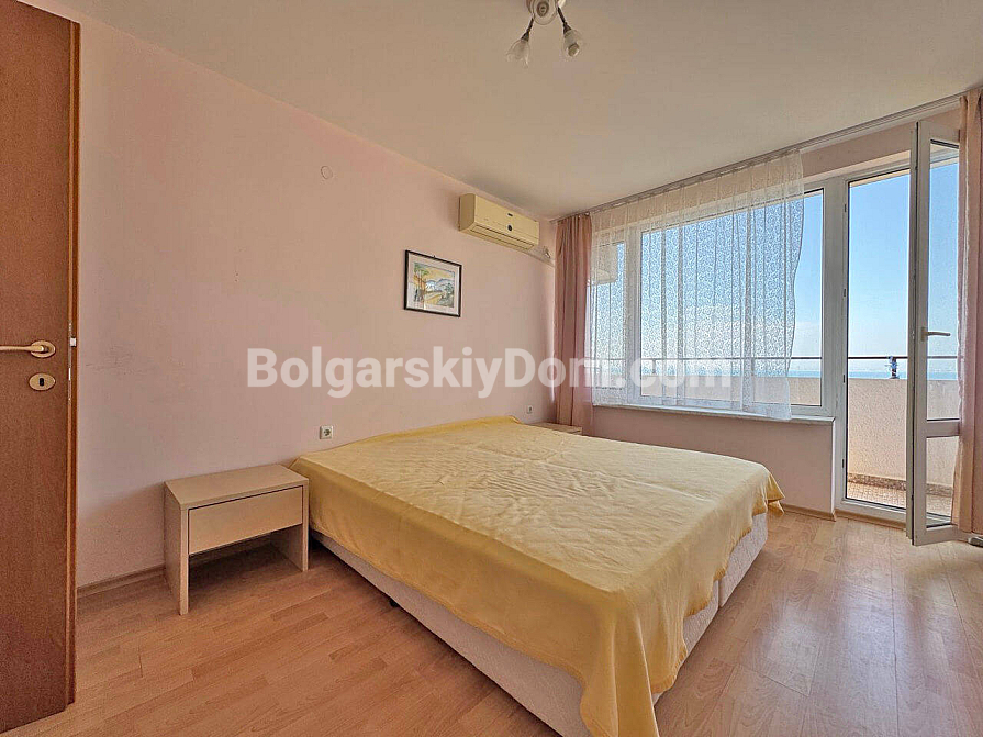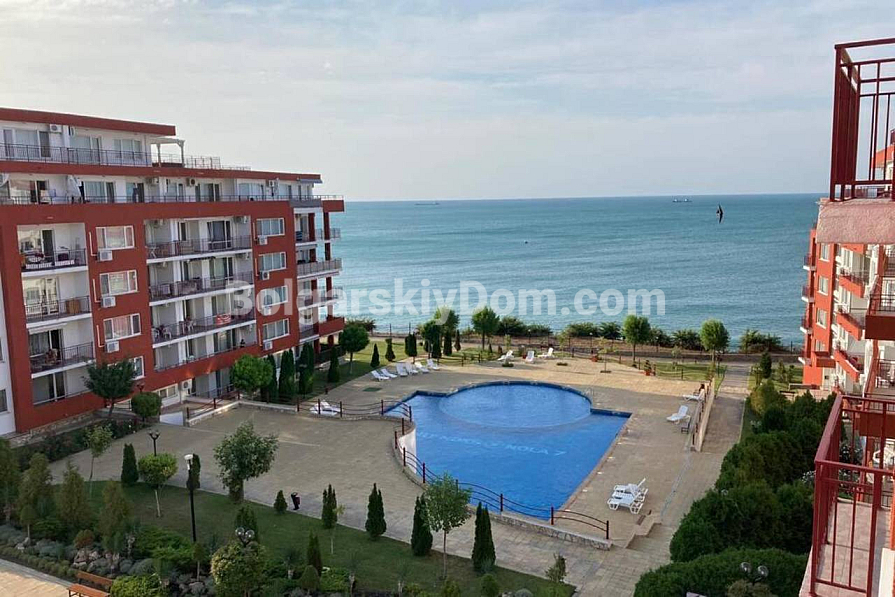 У пошуках дійсно вартої нерухомості? Зверніть увагу на простору двокімнатну квартиру з неймовірним панорамним видом на море всього за 50 метрів від пляжу! Цей ліквідний апартамент розташований у житловому комплексі Marina View Fort Beach, що знаходиться на першій лінії між престижним Святим Власом та курортом Єленіте. Квартира площею 74 кв.м розташована на третьому поверсі та продається повністю мебльованою і оснащеною всією побутовою технікою. Планування включає передпокій, простору вітальню, об’єднану з кухнею та обідньою зоною, затишну спальню, ванну кімнату та велику терасу. З тераси відкривається вражаючий краєвид на море — щоденне натхнення. Комплекс введено в експлуатацію (Акт 16) і має низьку таксу підтримки.