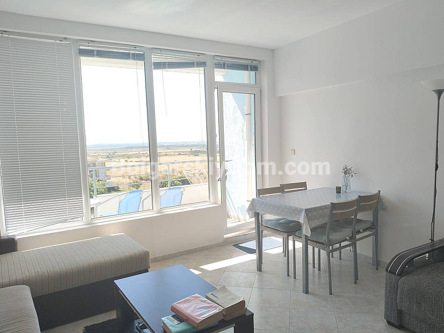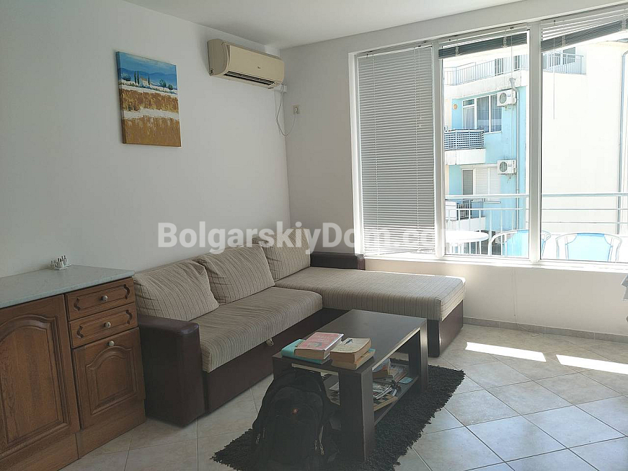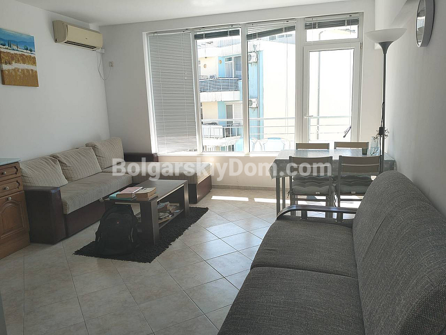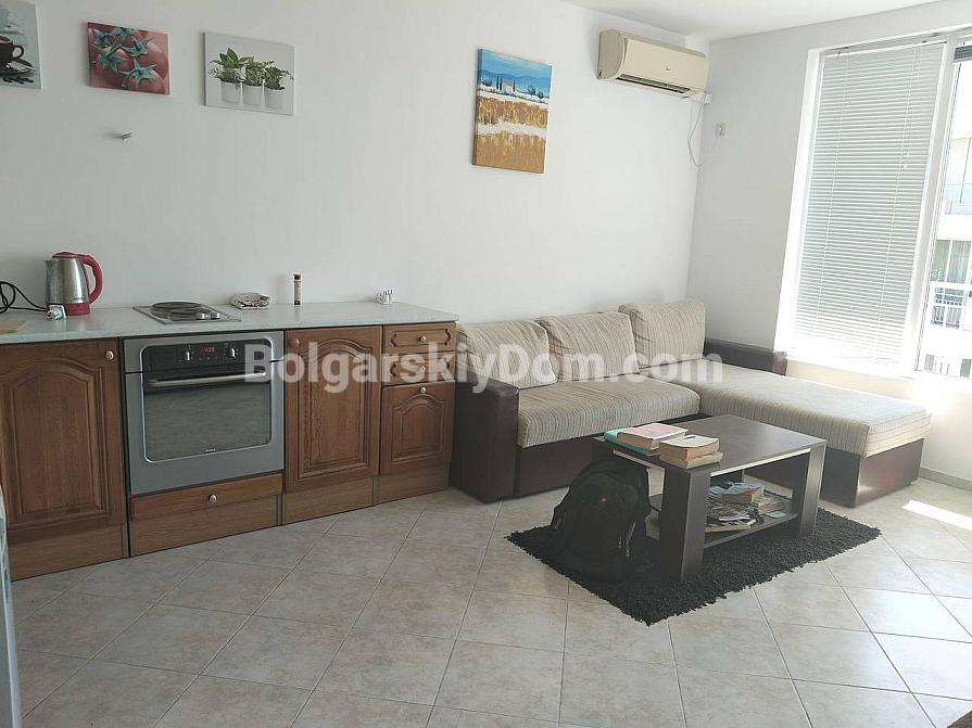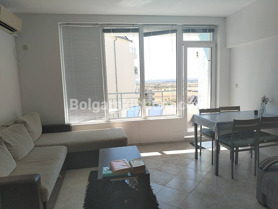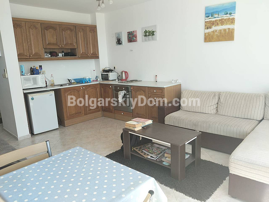 Комфорт і спокій кожен день втілила в собі ця двокімнатна квартира в комплексі біля підніжжя Балканських гір. Апартамент площею 66 кв. метрів розташований на другому поверсі сучасної будівлі з ліфтом. Будинок введений в експлуатацію (є АКТ 16) — можна заселятися відразу. Планування передбачає передпокій, світлу вітальню з кухнею і обідньою зоною, затишну спальню, ванну кімнату з душовою кабіною і дві сонячні тераси. Квартира повністю мебльована і обладнана технікою. Вона може прекрасно послужити для цілорічного проживання, літнього відпочинку або в якості інвестиції з гарантованим доходом від оренди.
