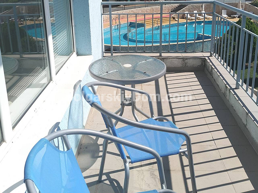 Сансет Кошариця - це тихий, чистий і зелений житловий комплекс біля підніжжя гір, всього в декількох хвилинах їзди від селища Кошариця і в 10 хвилинах від галасливого курорту Сонячний берег. Прямо до комплексу ходить автобус. Тут панує атмосфера затишку, безпеки і гармонії з природою. На території: контрольований доступ і цілодобова охорона, відеоспостереження, парковка, кілька басейнів для дорослих і дітей з шезлонгами і парасольками, доглянуті загальні зони і ландшафтний дизайн. Річна такса підтримки складає всього 600 євро. Зв'яжіться з нами вже сьогодні, щоб дізнатися більше та організувати перегляд!