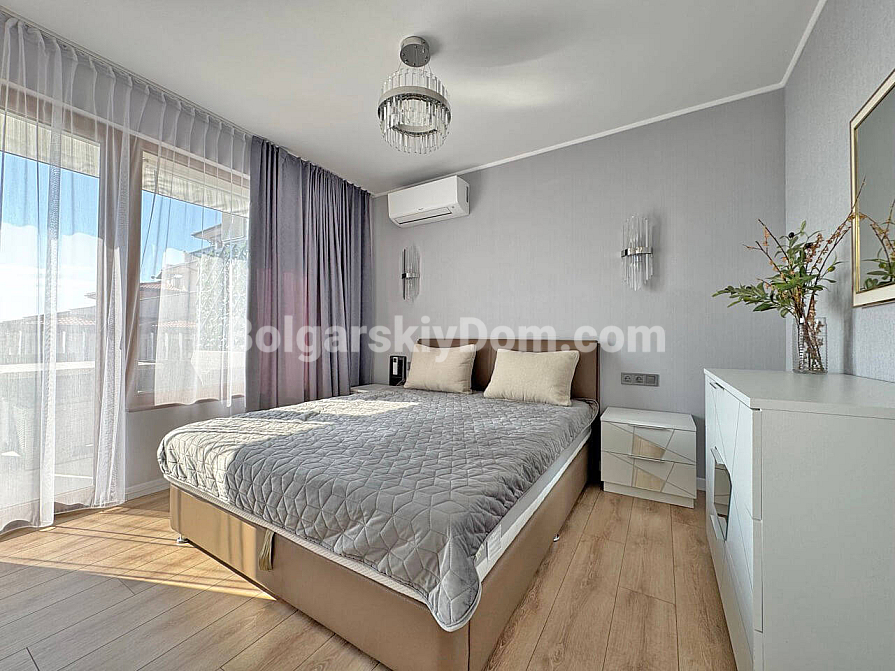 Новий флагманський апартамент з’явився в каталозі Болгарський Дім: трикімнатна квартира площею 103 кв.м. з вражаючим, прямим видом на море в комплексі Sun Coast Resort, який розташований буквально на першій лінії Святого Власа! Квартира у відмінному стані, повністю мебльована та обладнана технікою. Планування ідеальне для родини: передпокій, простора вітальня з кухнею та обідньою зоною, дві повноцінні спальні, ванна кімната та балкон, облаштований як зона відпочинку. Ви купуєте готове житло, де не потрібно думати ні про що, окрім відпочинку!