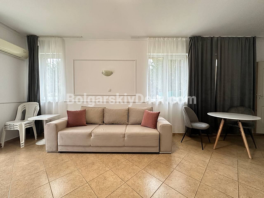 Уявіть: ви відкриваєте двері — і всього в парі кроків перед вами - блакитна гладь басейну. Ранкова кава, свіже морське повітря, тиша і зелень навколо. Цей унікальний апартамент площею 120 кв.м розташований на партері і продуманий до дрібниць: простір розділений на два повністю автономних житла. Основна квартира - з вітальнею, двома спальнями і двома санвузлами. Світла, функціональна, з прямим виходом до басейну — ідеально для сім'ї, яка цінує комфорт і приватність. Друга частина - студія з власним санвузлом і окремим входом. Відмінний варіант для гостей, дорослих дітей або під здачу в оренду — житло, яке саме себе окупає. Квартири чисті, доглянуті, повністю облаштовані всіма необхідними меблями і технікою. У кожній є своя окрема кухня. Вам залишиться тільки додати трохи вашої індивідуальності в декор.