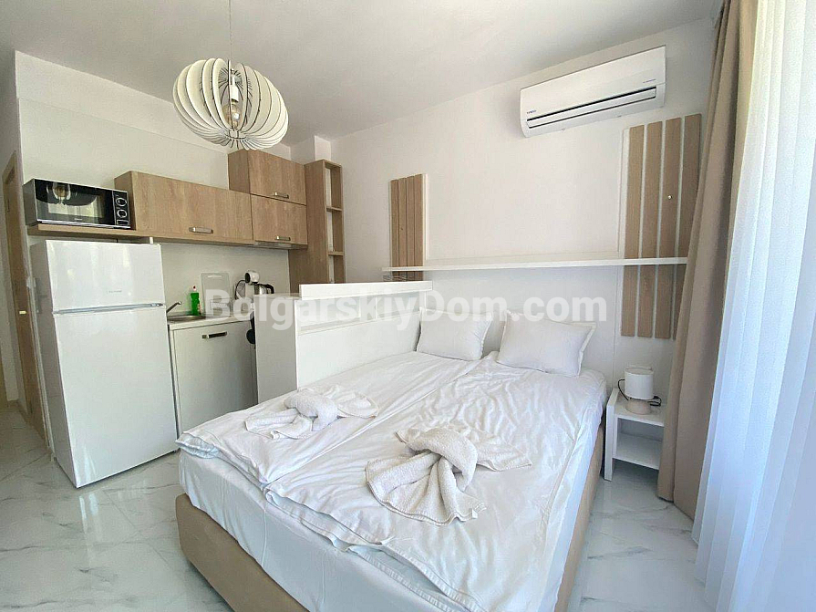 Терміново! Гаряча пропозиція! Подивіться на цю стильну, нову студію площею 30 кв.м у преміальному комплексі Green Paradise 5 у Приморсько! Якщо ви шукаєте дійсно вигідну інвестицію — сміливо звертайтеся до агента. Студія повністю мебльована, оснащена всією необхідною технікою та перебуває у відмінному стані. З балкона відкривається приємний вид на басейн комплексу. Розташована на 2 поверсі п’ятиповерхового будинку.
