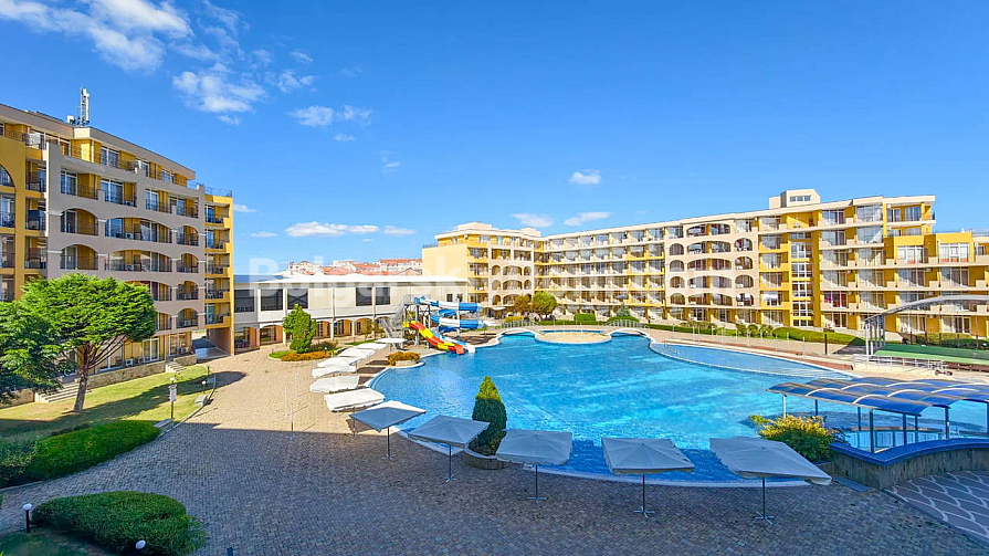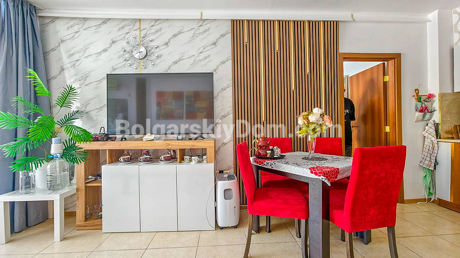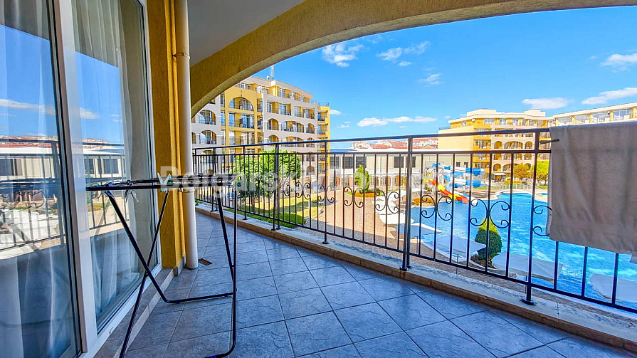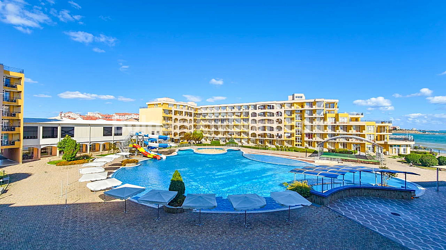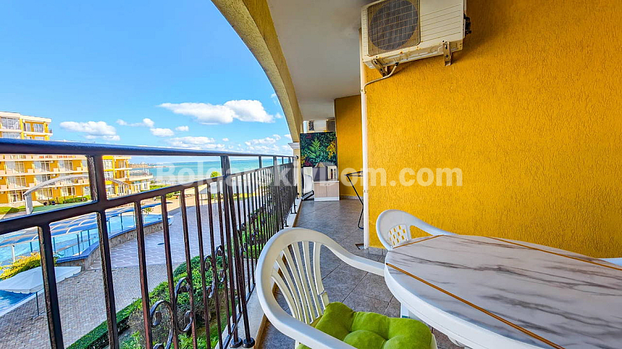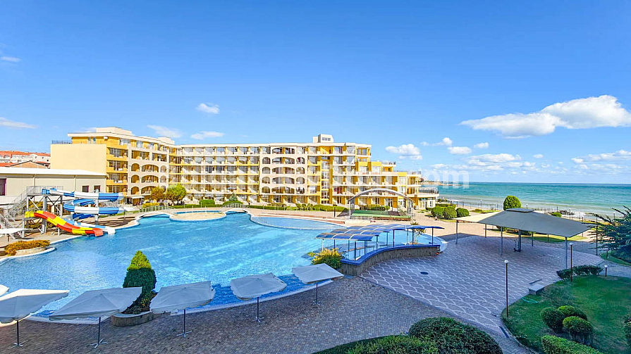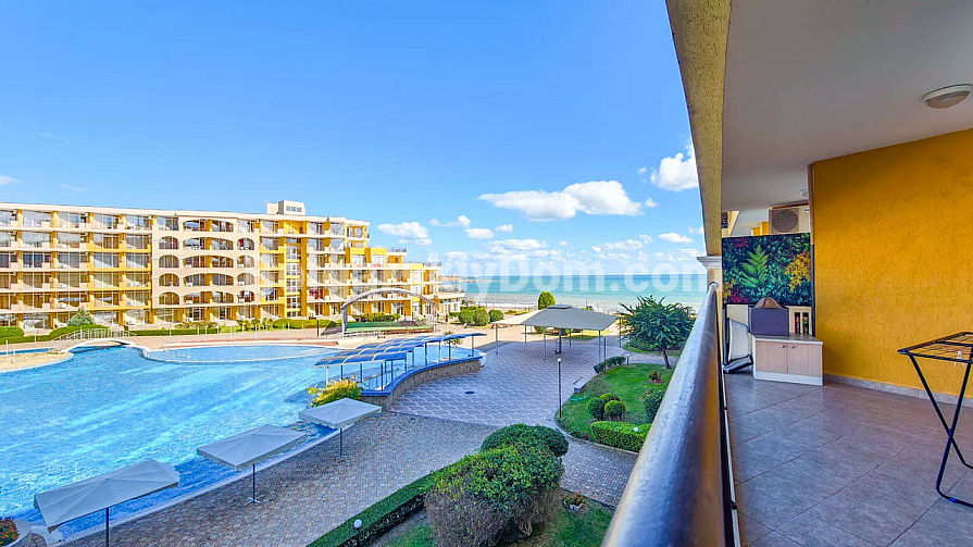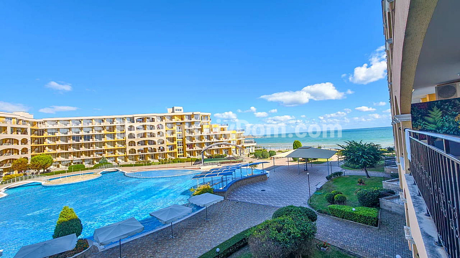 Топове поповнення в каталозі об’єктів з видом на море! Агентство Болгарський Дім представляє простору двокімнатну квартиру площею 72 кв.м з неймовірно красивим краєвидом на море та великий басейн. Апартамент розташований на 2 поверсі будівлі з ліфтом у комплексі Midia Grand Resort. Квартира повністю укомплектована всіма необхідними меблями та технікою, перебуває у відмінному стані та готова до негайного заселення. Планування ідеальне: передпокій, простора вітальня з кухонною зоною, спальня з додатковим бонусом — власною гардеробною, ванна кімната та великий балкон.