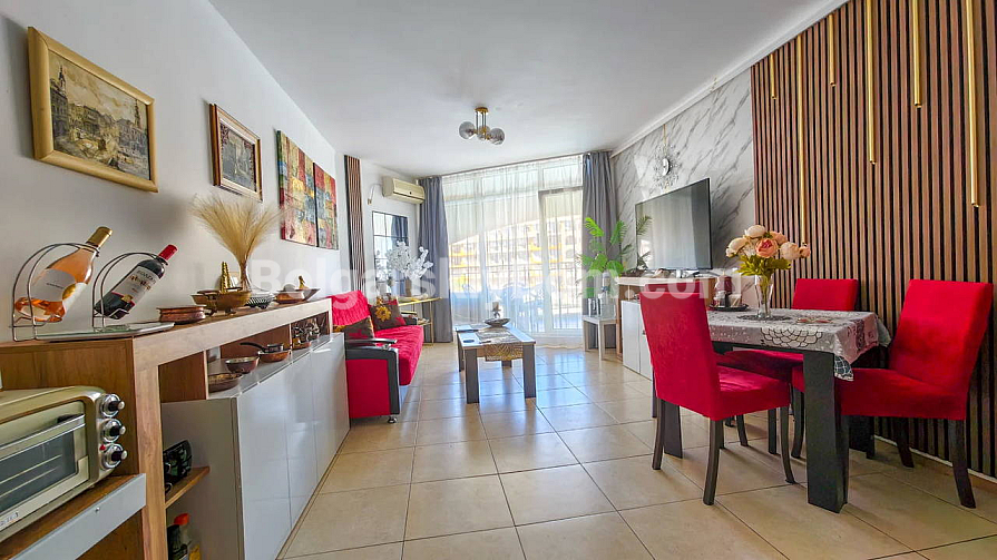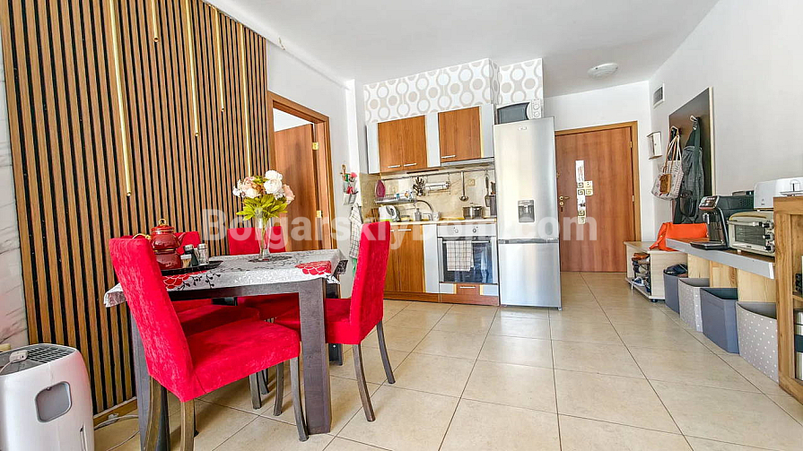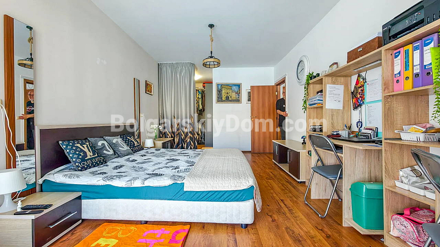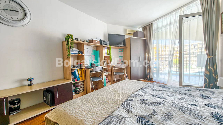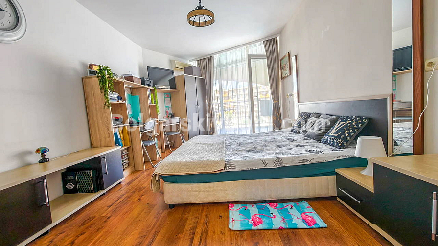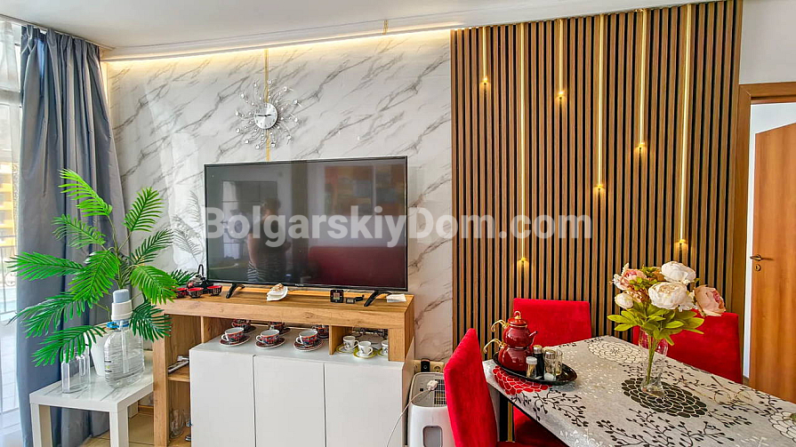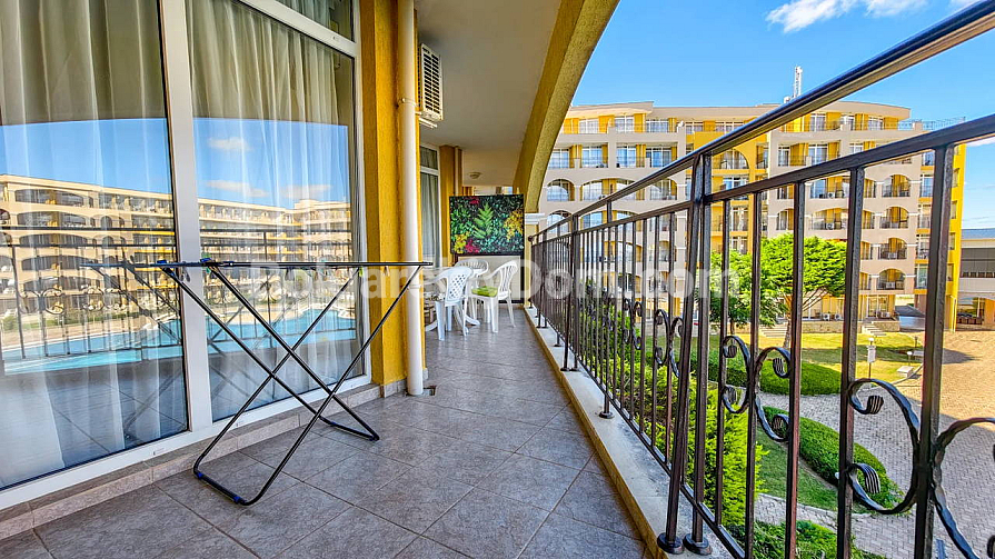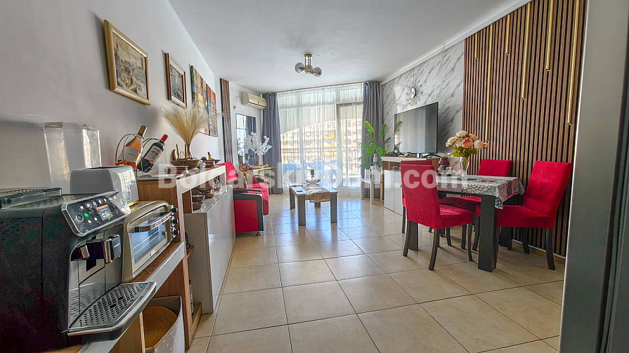 Топове поповнення в каталозі об’єктів з видом на море! Агентство Болгарський Дім представляє простору двокімнатну квартиру площею 72 кв.м з неймовірно красивим краєвидом на море та великий басейн. Апартамент розташований на 2 поверсі будівлі з ліфтом у комплексі Midia Grand Resort. Квартира повністю укомплектована всіма необхідними меблями та технікою, перебуває у відмінному стані та готова до негайного заселення. Планування ідеальне: передпокій, простора вітальня з кухонною зоною, спальня з додатковим бонусом — власною гардеробною, ванна кімната та великий балкон.