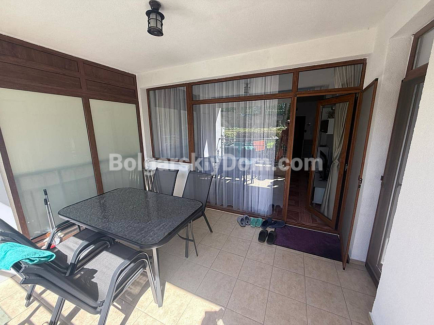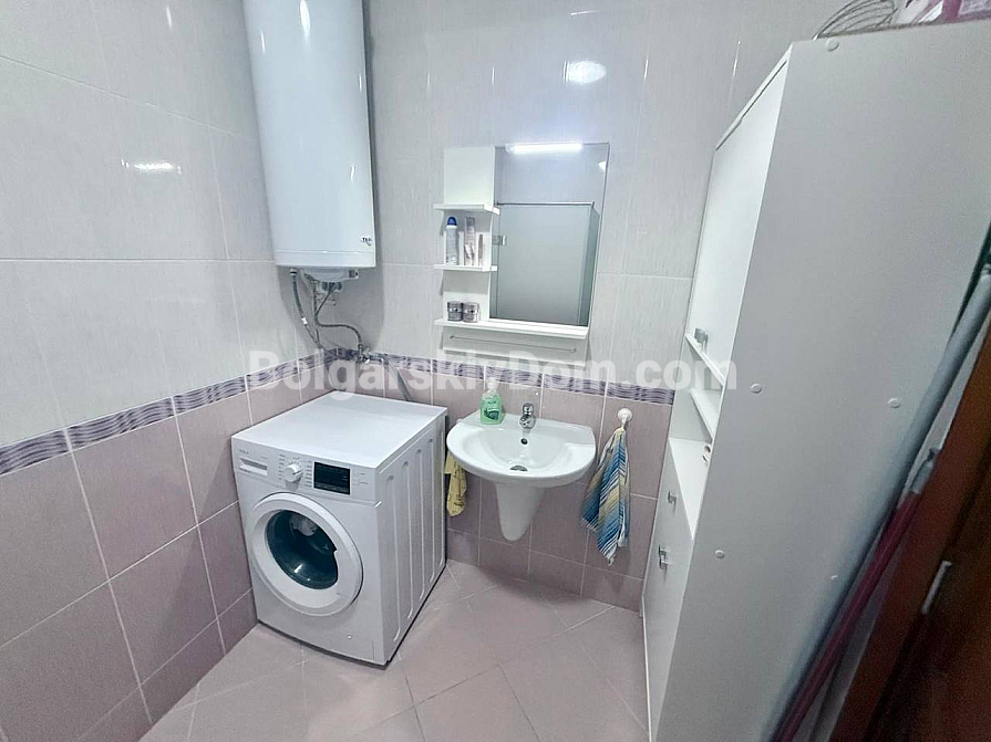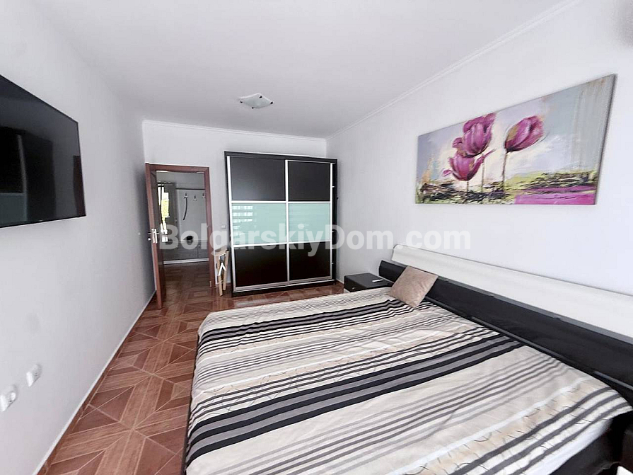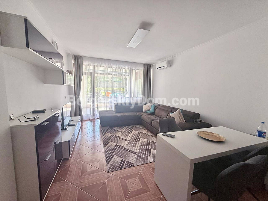 Агентство Болгарський Дім пропонує ексклюзивну двокімнатну квартиру площею 65 кв.м на першому поверсі з південною орієнтацією у Святому Власі. Житло повністю обладнане для негайного цілорічного проживання або здачі в оренду. Планування ідеальне: просторий коридор, вітальня з новою, повністю обладнаною кутовою кухнею (включаючи великий холодильник та кавоварку), розкішний диван-ліжко та сучасна спальня з великим шафою. У квартирі два плазмові телевізори і два кондиціонери, а також ванна кімната з пральною машиною та 80-літровим бойлером. Крім того, апартамент має просторий балкон з додатковим виходом у зелену зону та прозорою шторкою для захисту від вітру.