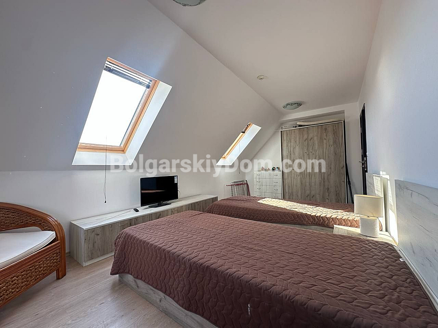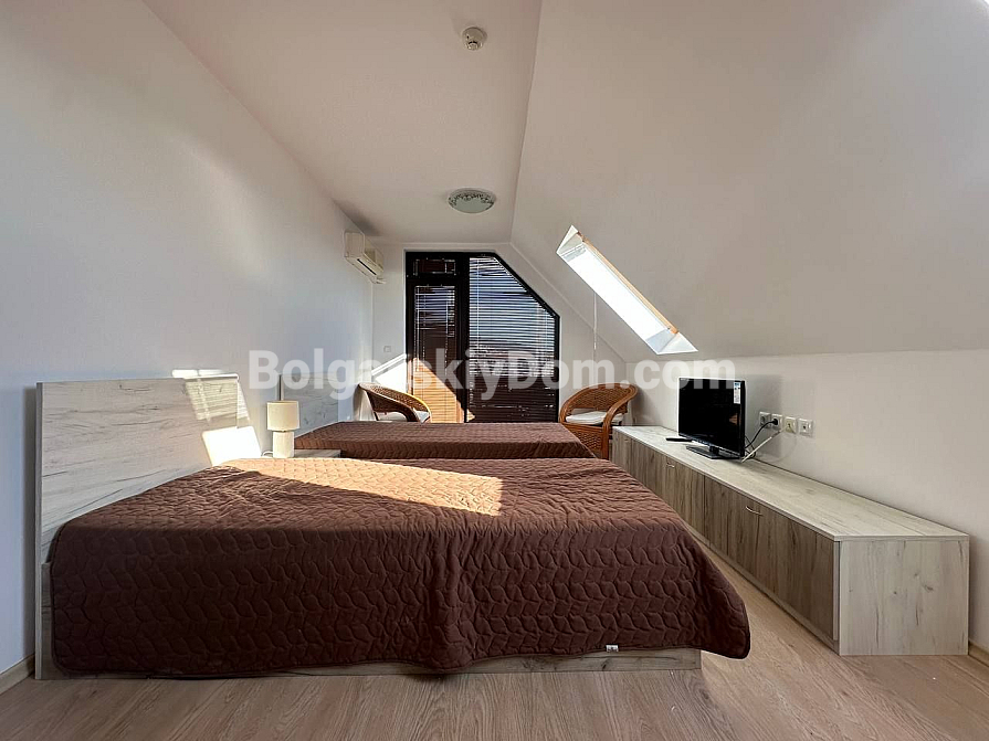 Фантастичний краєвид на море вже чекає на вас! Пропонуємо двокімнатну квартиру площею 58 кв.м у житловому комплексі «Радуга 2» у Святому Власі. Апартамент розташований на шостому поверсі, звідки відкривається захоплива панорама моря. І, що надзвичайно важливо, документи повністю готові до угоди — оформлення пройде максимально швидко! Квартира повністю мебльована якісними меблями та обладнана всією необхідною технікою. Планування включає простору вітальню, окрему спальню та, звичайно, великий балкон, який стане вашим улюбленим місцем для відпочинку та милування краєвидами. Комплекс розташований всього за 400 метрів від моря у престижному районі Святого Власа, недалеко від яхт-марини Диневі.