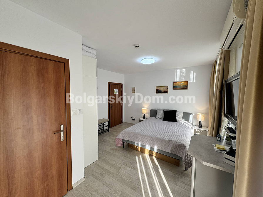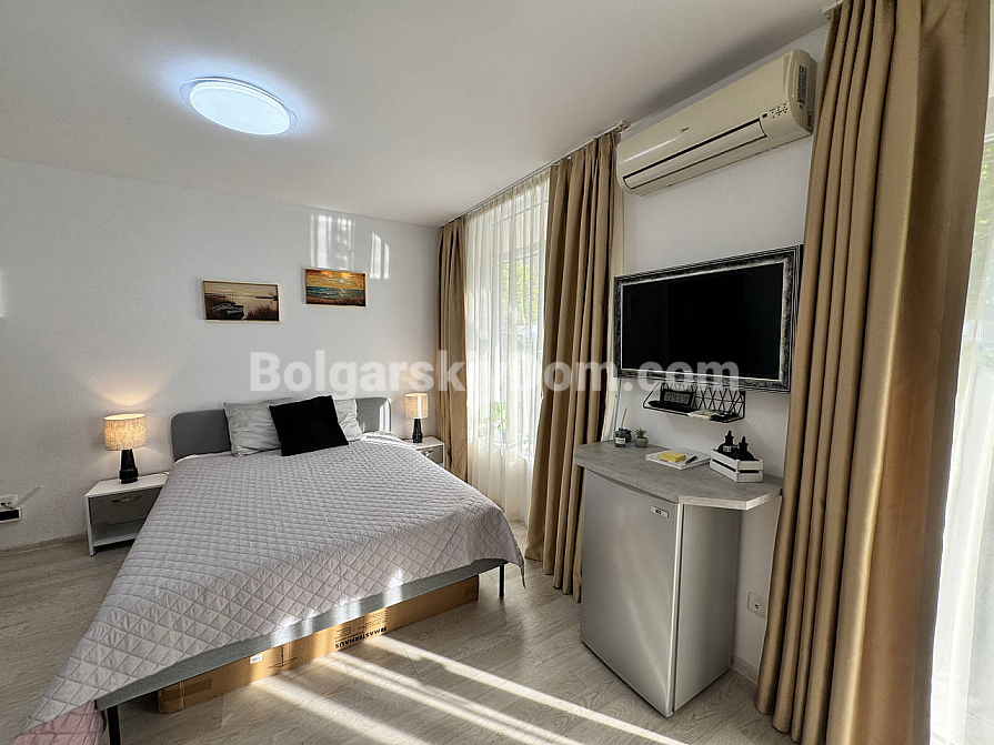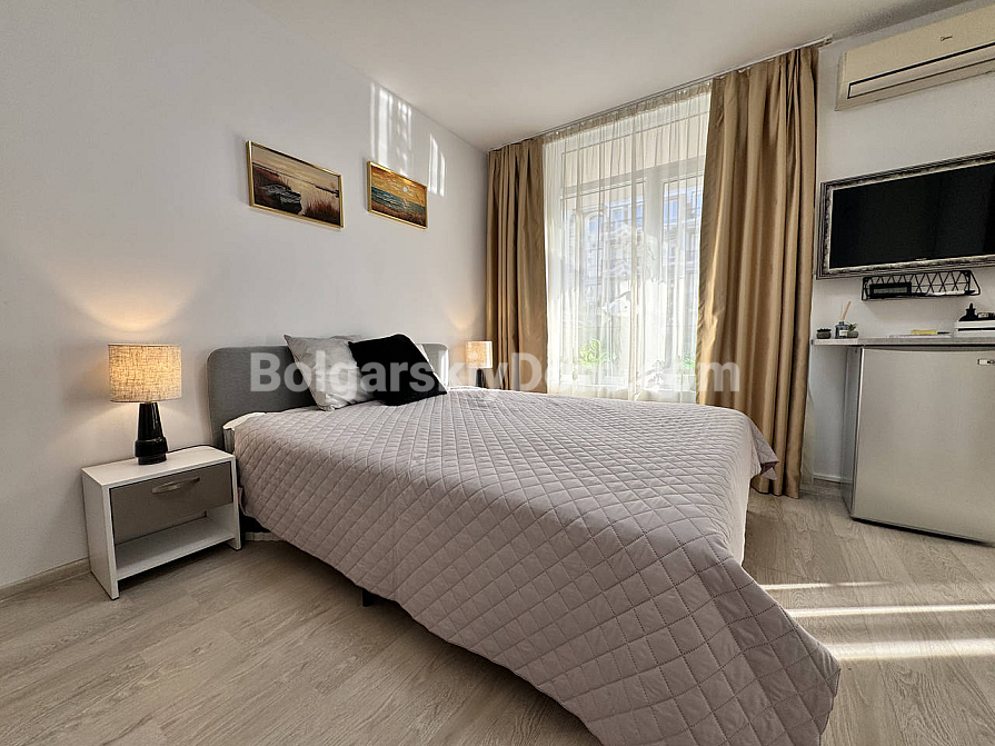 Новинка в категорії топ-інвестицій! Болгарський Дім пропонує світлу та стильну студію площею 37 кв.м у Сонячному Березі, розташовану на першому поверсі комплексу Даун Парк. Інтер’єр виконаний у сучасному мінімалістичному стилі з гармонійним поєднанням білого та бежевого кольорів, що створює відчуття простору й світла. Усередині є все необхідне: повністю обладнана кухонна зона з практичною пральною машиною та зручними шафками. Спальна зона оснащена комфортним двоспальним місцем і шафою. Особлива перевага — простора й затишна тераса з меблями та прямим виходом у зелений двір комплексу, ідеальне місце для ранкової кави.