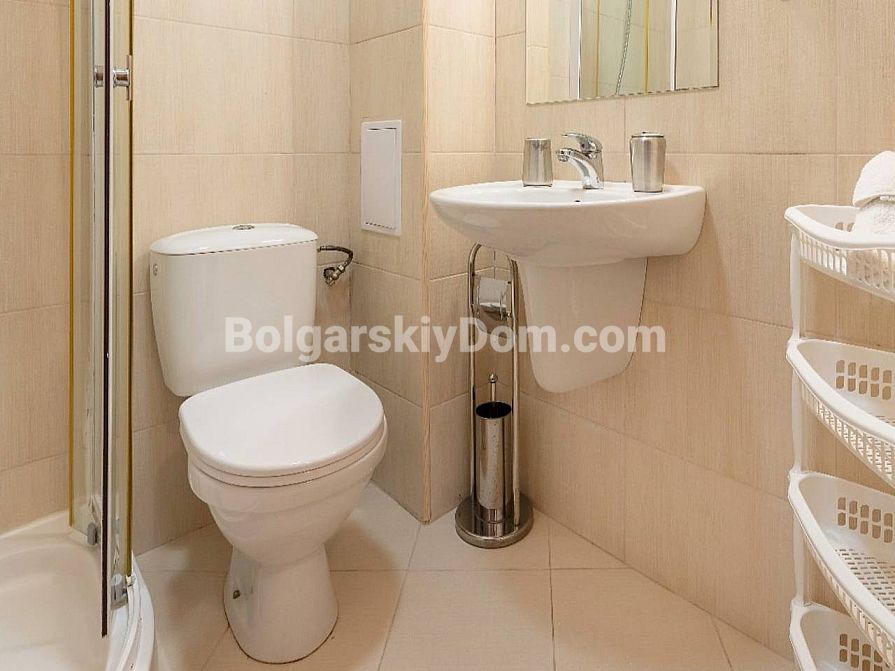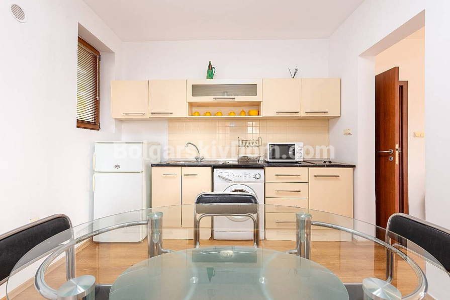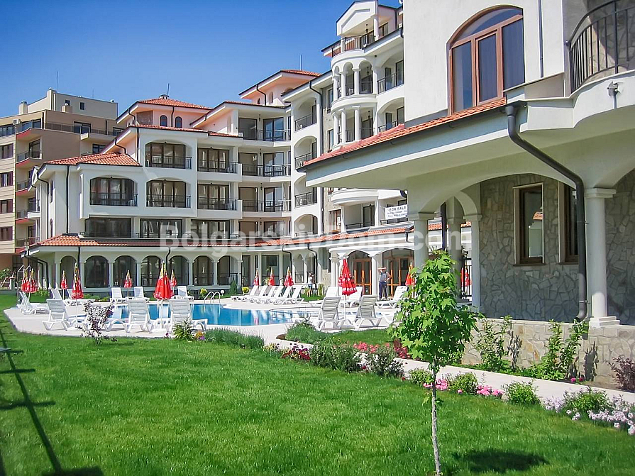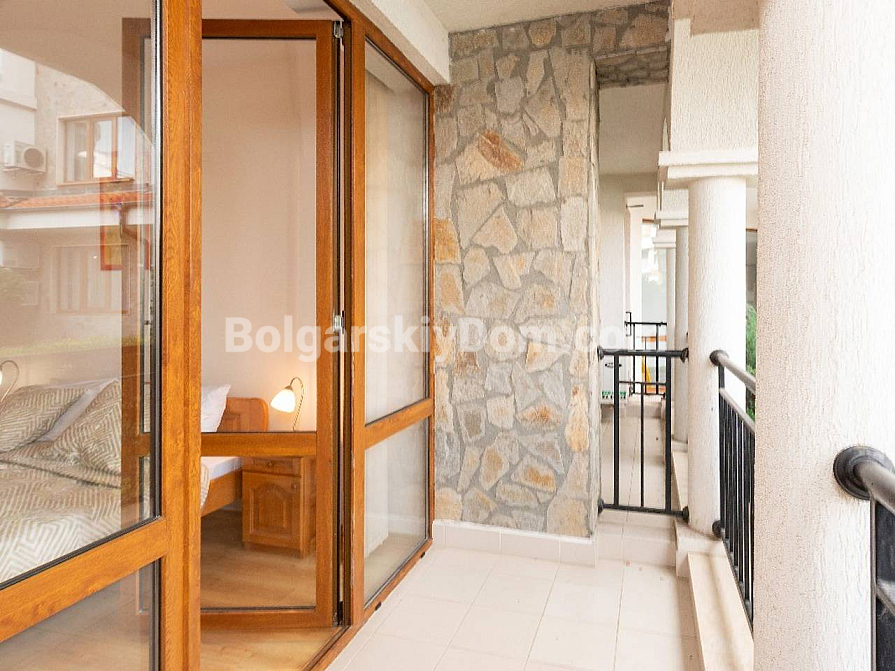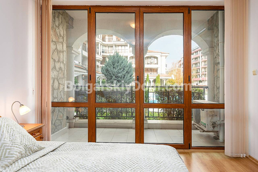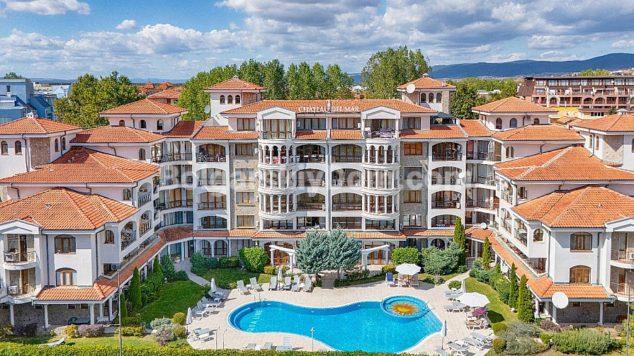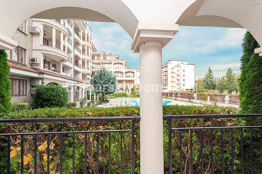 Затишна, обладнана та досить простора однокімнатна квартира в середземноморському стилі на Сонячному Березі! Агентство Болгарський Дім пропонує апартамент площею 91 кв.м у комплексі Chateau Del Mar. Це дійсно вражаючий метраж для двокімнатної квартири, що забезпечує максимальний комфорт. А економію забезпечує ціна: трохи більше 1000 євро за кв.м! Квартира розташована на першому поверсі, з красивим видом на басейн та ландшафтну територію. Планування включає передпокій, велику вітальню з кухонною та їдальнею зонами, окрему спальню та балкон. Нерухомість повністю мебльована та у відмінному стані.
