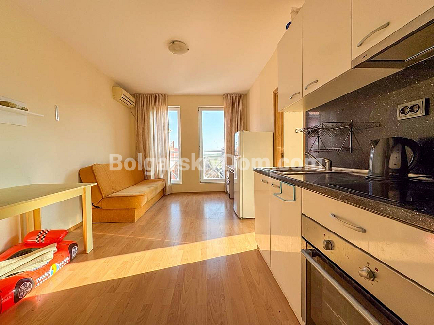 Ультрадоступна нерухомість у тихому передмісті топ-курорту! Команда Болгарського Дому пропонує ліквідну двокімнатну квартиру площею 52 кв.м у комплексі Sunny Day 6 на Сонячному Березі. Вона на другому поверсі: мебльована, оснащена кондиціонером та має затишний вид на зелений сад. Насправді, готове рішення як для оренди, так і для того, щоб просто заїхати і жити. Простір із двома кімнатами та однією ванною підходить для постійного проживання або стабільної цілорічної оренди.