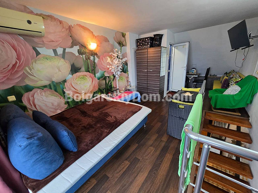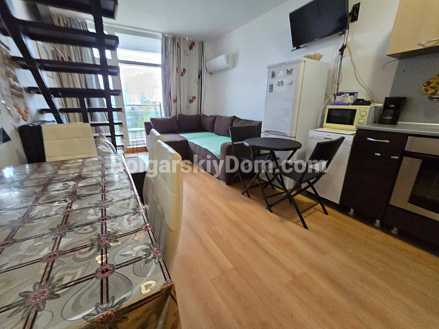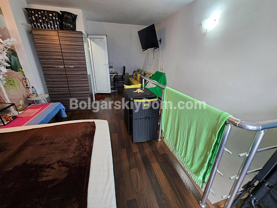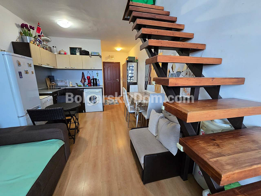Спеціальна пропозиція від Болгарського Дому: ексклюзивний мезонет (двоповерховий апартамент) у житловому комплексі Global Ville на Сонячному Березі. Цей стильний лот розташований на 5 та 6 поверхах і має вражаючий краєвид на місто та море — ідеальний фон для вашого нового життя. Апартамент площею 72 кв.м функціонально зонований: простора вітальня з міні-кухнею, спальня, коридор і, що дуже важливо, дві ванні кімнати та дві великі тераси. Ви отримуєте житло «під ключ», повністю умебльоване та обладнане новою технікою.