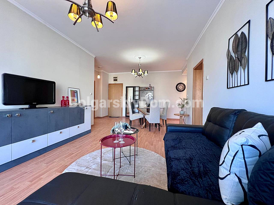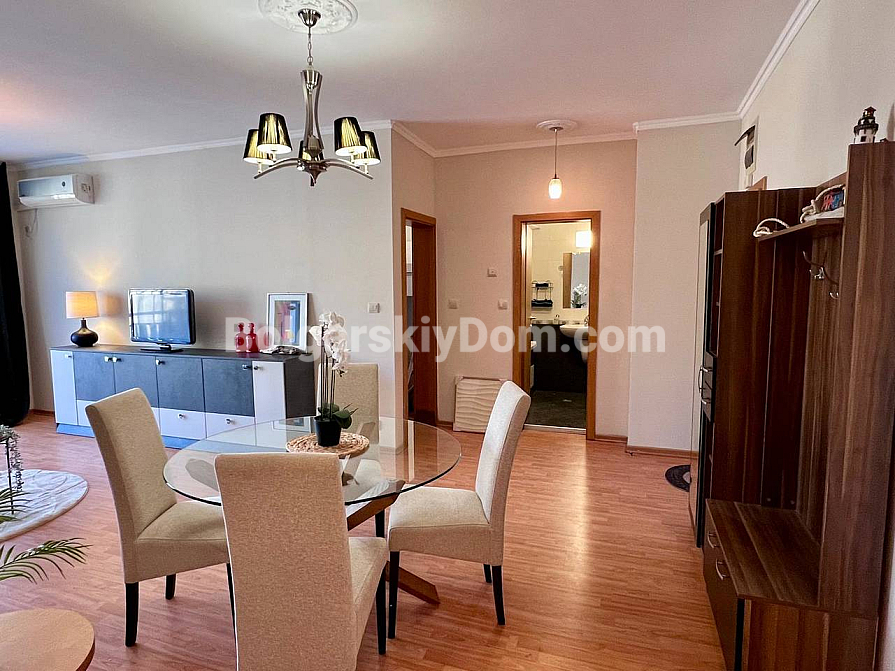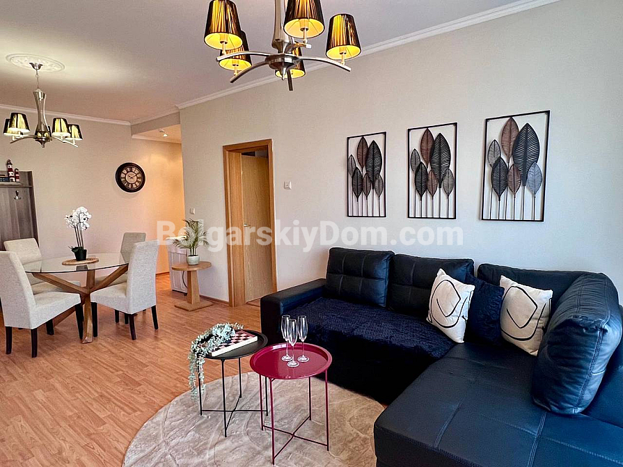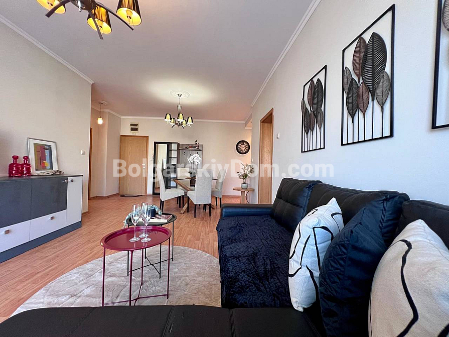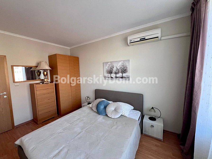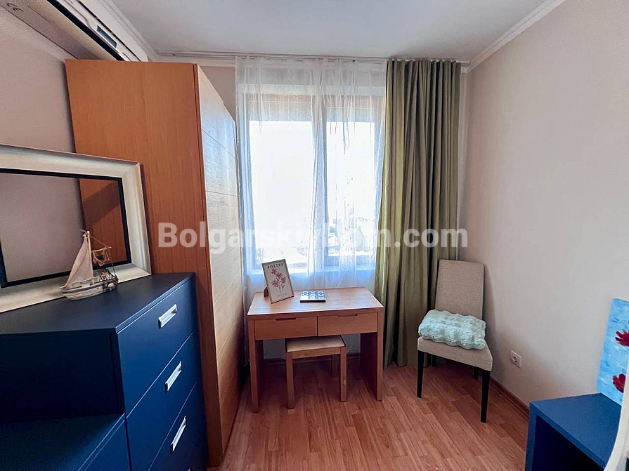 Перша лінія та прямий вид на Чорне море просто з ваших вікон. Пропонуємо простору квартиру з двома спальнями площею 101 кв.м у відомому комплексі Garden of Eden у Святому Власі. Це справжня перша берегова лінія — до пляжу всього 50 метрів. Квартира розташована на четвертому поверсі, з вікон і балкона відкривається прямий вид на басейн і море. Планування включає прихожу, велику вітальню з кухонною зоною, дві окремі спальні та два санвузли. Житло повністю мебльоване та оснащене побутовою технікою, усе в хорошому стані й готове до заселення. Саме такі об’єкти середнього бюджету зараз активно шукають інвестори. Не зволікайте — напишіть нам.