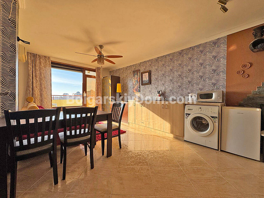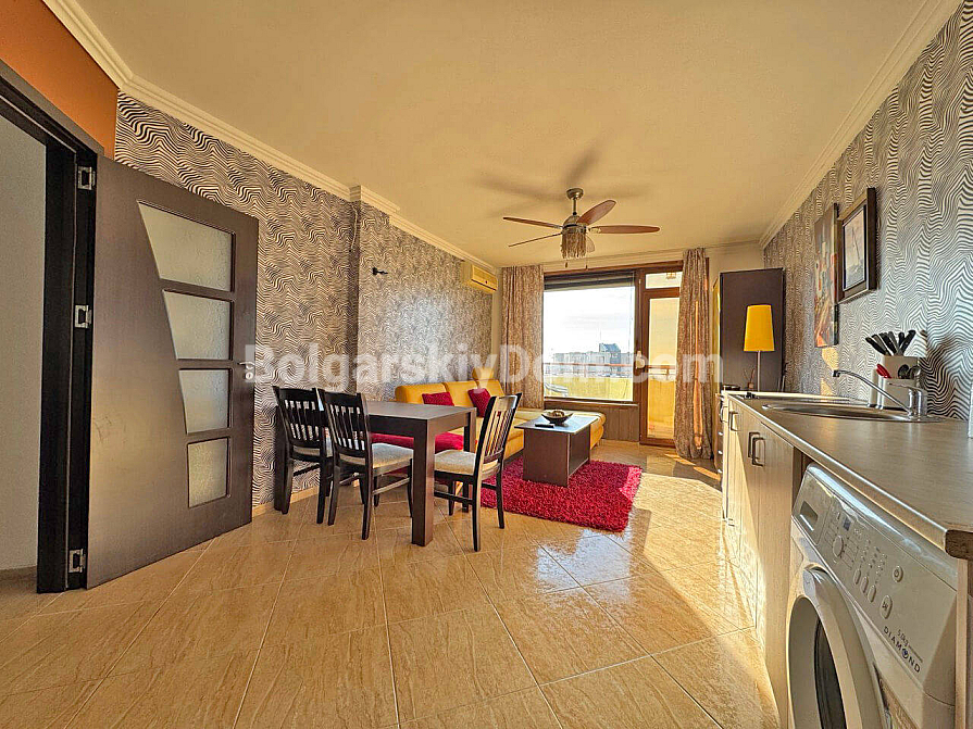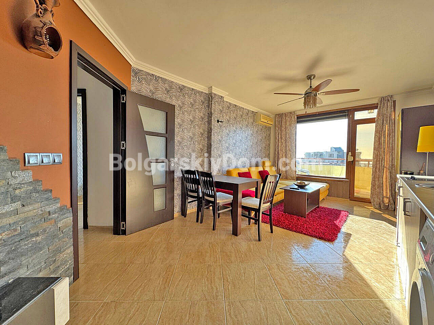 Новинка в каталозі вторинної нерухомості. Від сьогодні ви можете стати щасливим власником затишної двокімнатної квартири в комплексі Villa Antonia — локації, що асоціюється з камерністю та спокоєм Святого Власа. Квартира площею 61 кв.м розташована на шостому поверсі, звідки з двох балконів відкривається частковий вид на море. Планування продумане з акцентом на комфорт: простора вітальня поєднана з кухнею, а в спальні облаштовано окрему зону для робочого кабінету, що особливо актуально сьогодні. Об’єкт перебуває у відмінному стані та повністю укомплектований меблями й технікою, що позбавляє зайвих клопотів під час переїзду.