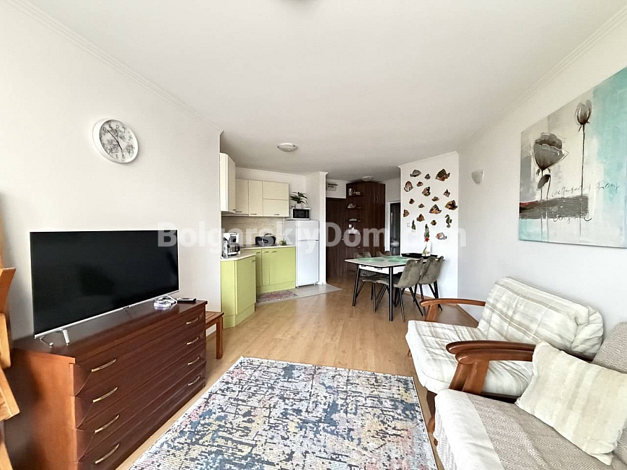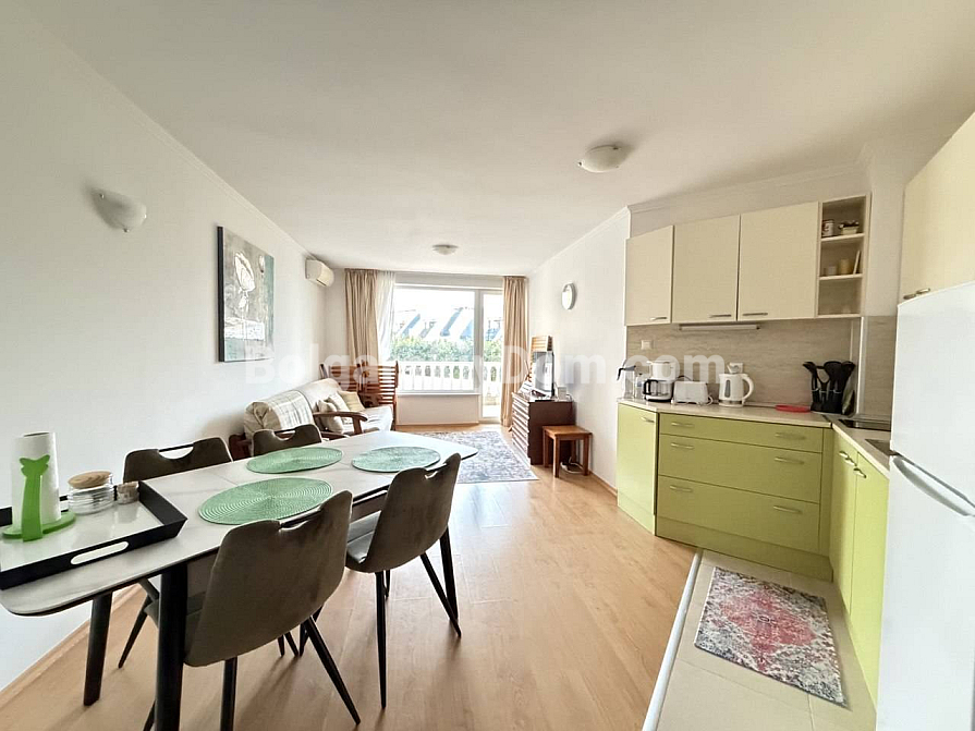 Розкішна нерухомість від Bolgarskiy Dom. Якщо ви шукаєте баланс між приватністю та преміальним сервісом, зверніть увагу на цей лот у Villa Antorini. Квартира площею 65 кв.м розташована на другому поверсі та орієнтована на тих, хто цінує затишок: з вікон відкривається вид на доглянутий внутрішній сад, що створює відчуття особистого зеленого оазису. Планування включає простору вітальню, окрему спальню та одразу дві тераси, що дозволяє грамотно зонувати простір для відпочинку на свіжому повітрі. До моря всього 200 метрів, а до знаменитої яхтової гавані Марина Диневі можна дійти пішки за 15 хвилин.