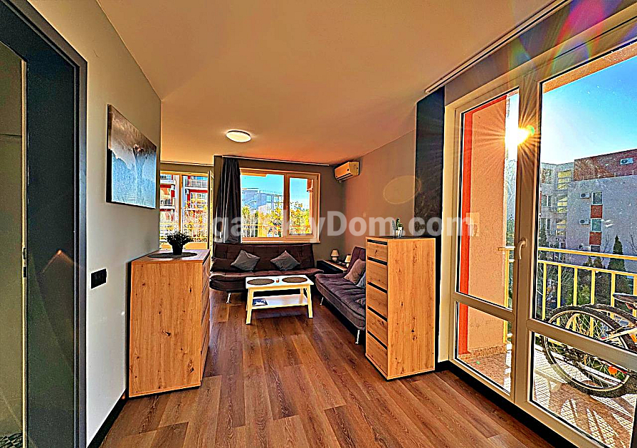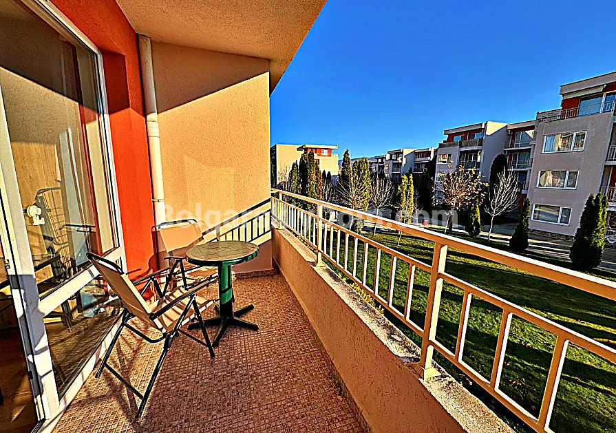 Зустрічайте свіже поповнення в каталозі агентства нерухомості Болгарський Дім — по-справжньому простору студію в популярному сімейному комплексі Nessebar Fort Golf Club! Загальна площа 54 кв.м робить житло схожим на сучасну однокімнатну квартиру нового формату, що відкриває набагато більше сценаріїв планування простору. Студія розташована на першому поверсі, що забезпечує швидкий доступ до виходу та басейнів, а з вікон відкривається вид на внутрішню паркову територію. Квартира у відмінному стані, повністю укомплектована меблями та побутовою технікою, тож вам не доведеться витрачати час і бюджет на облаштування — можна заїжджати відразу після оформлення угоди. Ліквідний та привабливий варіант — чекаємо вашого дзвінка!