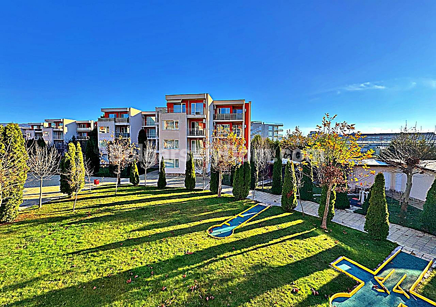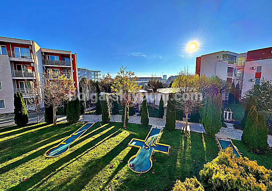 Комплекс Nessebar Fort Golf Club у західній частині Сонячного Берега давно став еталоном якісного управління та насиченої інфраструктури. Тут є все: від професійних гольф-полів до кількох басейнів, ресторанів, фітнес-залу та навіть медичного кабінету на території. Локація ідеальна для активного життя — до центру курорту всього 450 метрів, поруч великий аквапарк і супермаркети, а прогулянка до пляжу займає близько 10–15 хвилин. Будівля має Акт 16, а рахунки за електроенергію та воду оплачуються за побутовими тарифами.