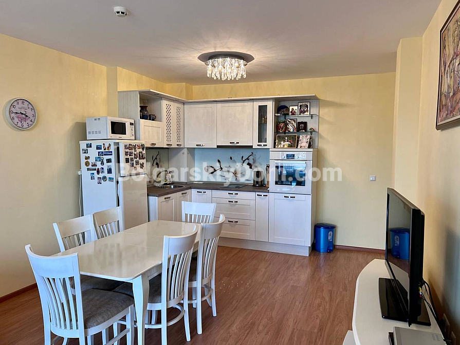 Зустрічайте новинку в базі Болгарського Дому для тих, хто хоче прокидатися під шум прибою — світла двокімнатна квартира в проєкті Excelsior. Ми додали цей об’єкт спеціально для покупців, які не планують займатися ремонтом чи підбором меблів, адже апартамент продається повністю укомплектованим. Усередині є все необхідне — від кухонної техніки до текстилю, а планування з окремою спальнею забезпечує відчуття приватності та домашнього затишку. Квартира добре зберігає комфортну температуру в будь-яку пору року, тож тут можна жити цілий рік без зайвих турбот. Площа 83 кв.м., п’ятий, передостанній поверх.