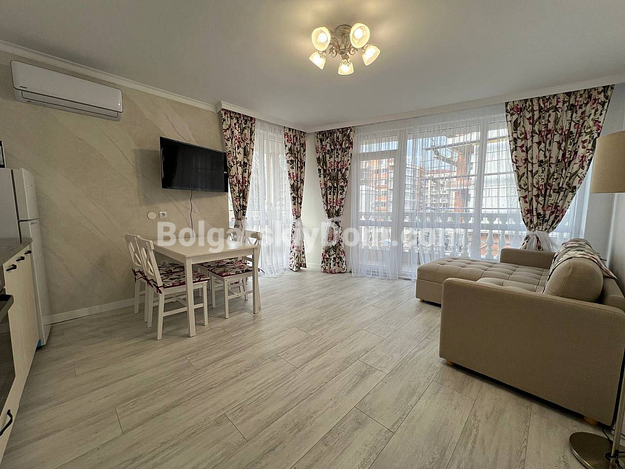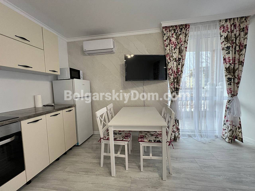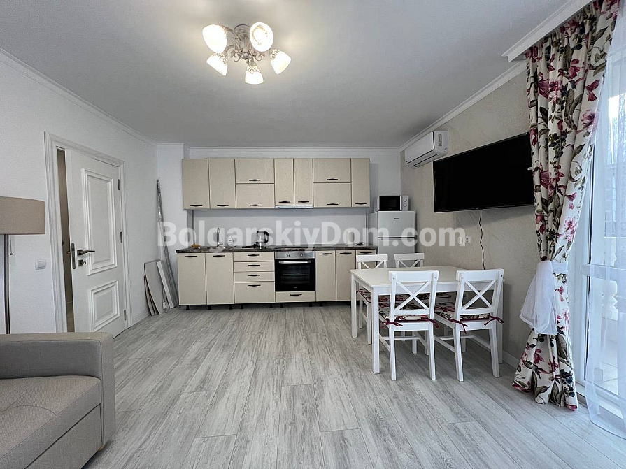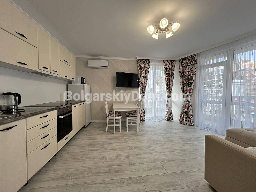 Сонячний Берег — топовий курорт і чудова локація! Команда агентства Болгарський Дім представляє простору двокімнатну квартиру площею 70 кв.м у житловому комплексі Магнолія 7. Апартаменти розташовані на другому поверсі та пропонуються з повністю готовим інтер’єром — уже виконано сучасний ремонт у спокійній кольоровій гамі. Планування: світла кухня-вітальня з обідньою зоною плавно переходить у зону відпочинку, окрема спальня обладнана великим ліжком. Квартира укомплектована всією необхідною побутовою технікою, включно з кондиціонером і пральною машиною в сучасній душовій кімнаті. З кімнат є вихід на балкон, який можна облаштувати як затишний куточок для ранкової кави на свіжому повітрі. Бажаєте забронювати час для особистого огляду або провести зустріч онлайн? Напишіть нам!