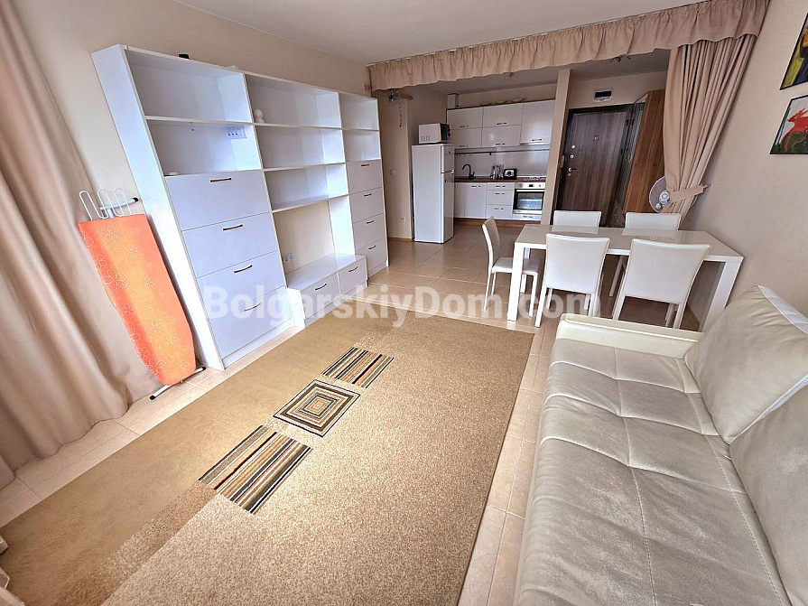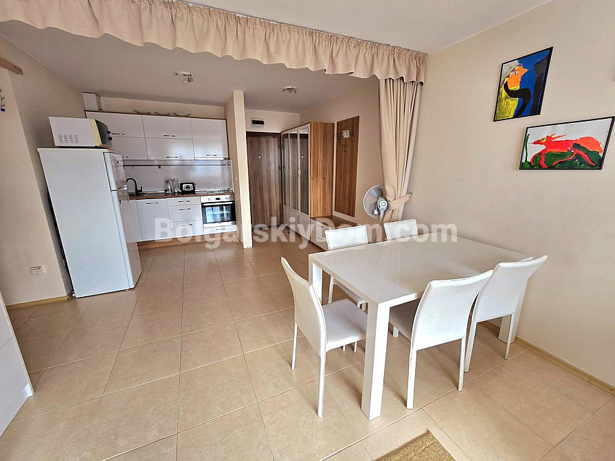 У базі пропозицій агентства Болгарський Дім у селищі Равда з’явився просторий апартамент площею 75 кв.м, розташований у сучасному житловому проєкті Lifestyle 3. Квартира знаходиться на четвертому поверсі шести поверхового будинку, обладнаного ліфтом для комфортного доступу. Внутрішній простір поділено на велику вітальню з кухонною зоною та затишну спальню. Головною перевагою планування є містка тераса з приємним видом на внутрішню територію з басейном. Житло передається новим власникам у відмінному стані, з усіма меблями та побутовою технікою, що позбавляє додаткових клопотів під час переїзду.