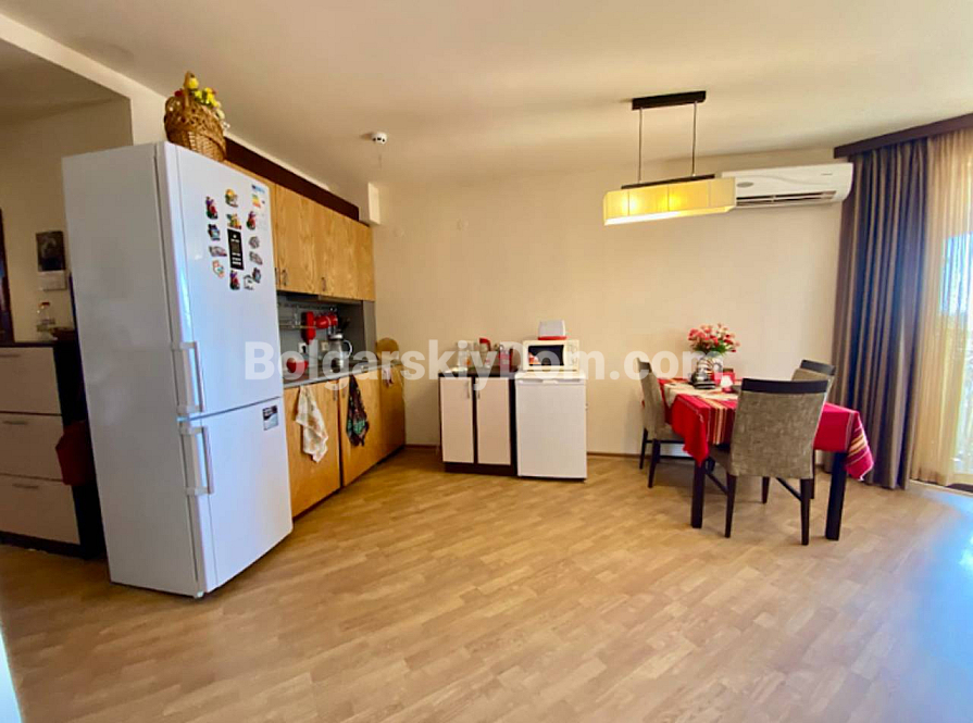 Свіже поповнення в тихій локації, віддаленій від туристичної частини курорту. У комплексі Chairite у продажу з’явилася однокімнатна квартира з дійсно вражаючою площею 76 кв.м. Це повноцінний житловий простір на третьому поверсі. Квартира повністю мебльована та готова до вашого переїзду: простора вітальня з кухонною зоною, охайний санвузол і тераса. Будівля має Акт 16 і перебуває у відмінному стані, тож жодних сюрпризів із ремонтом чи документами не буде. Зверніть увагу на доступну ціну — одну з найнижчих у нашому каталозі.