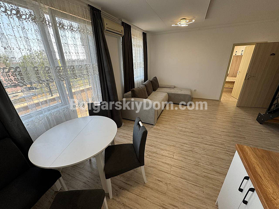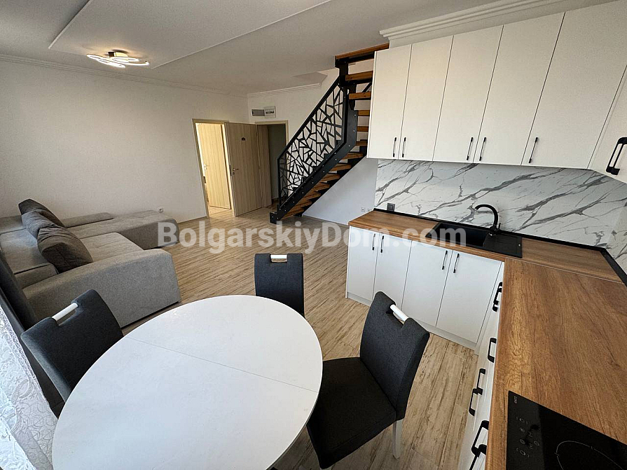 Від агентства Болгарський Дім надійшла пропозиція для поціновувачів просторого житла: дворівневі апартаменти в південній частині Сонячного Берега. Загальна площа 120 кв.м розподілена між шостим і сьомим поверхами, що створює відчуття повноцінного будинку, а не просто квартири. Планування включає простору вітальню з кухонним блоком, дві ізольовані спальні та дві зони відпочинку у вигляді балкона і великої тераси. Квартира повністю укомплектована меблями та технікою, а наявність Акта 16 дозволяє швидко оформити угоду та заїхати без додаткових вкладень у ремонт. Це капітальне житло з вторинного фонду, яке зберігає високу ліквідність завдяки якісному виконанню та вдалому плануванню.