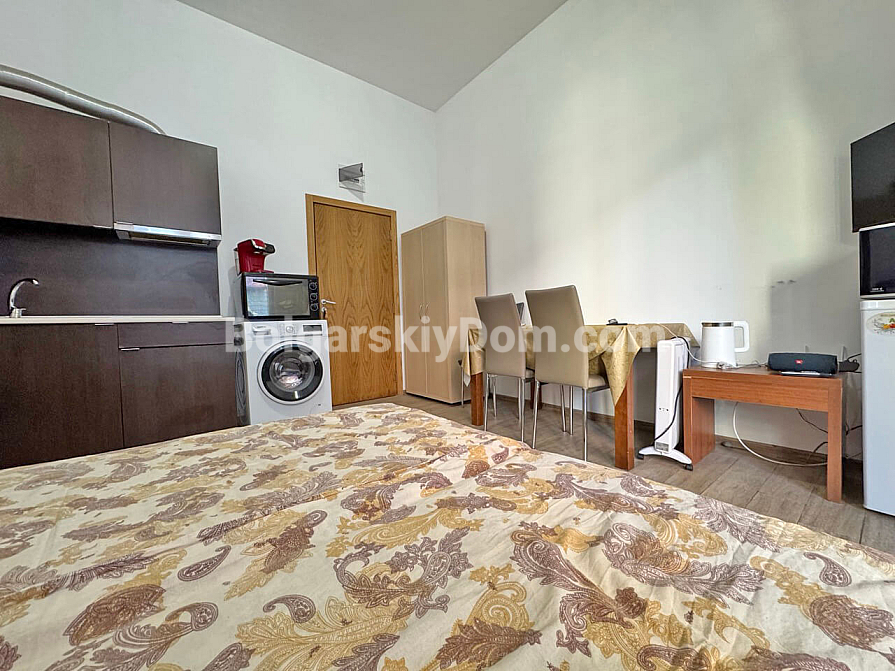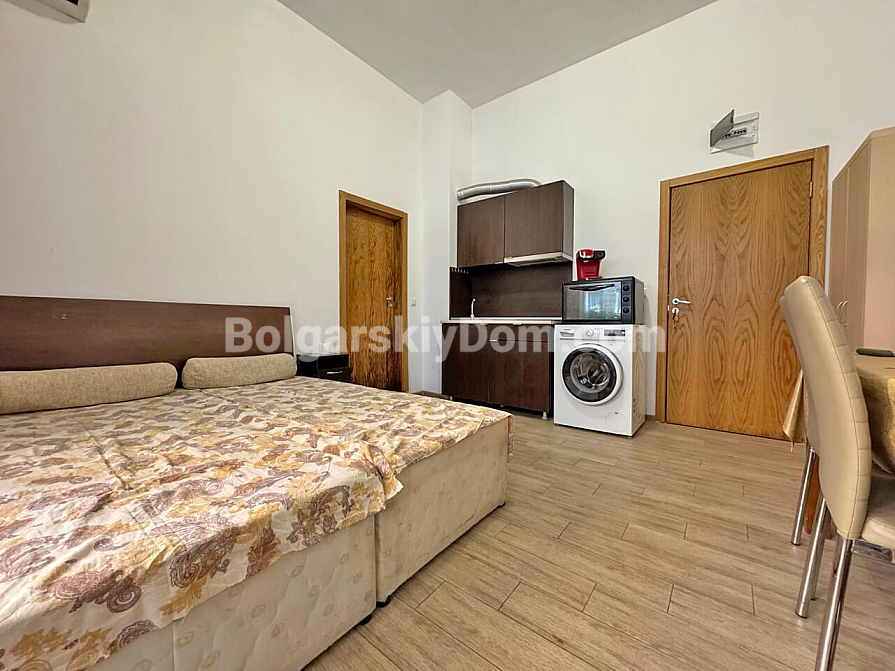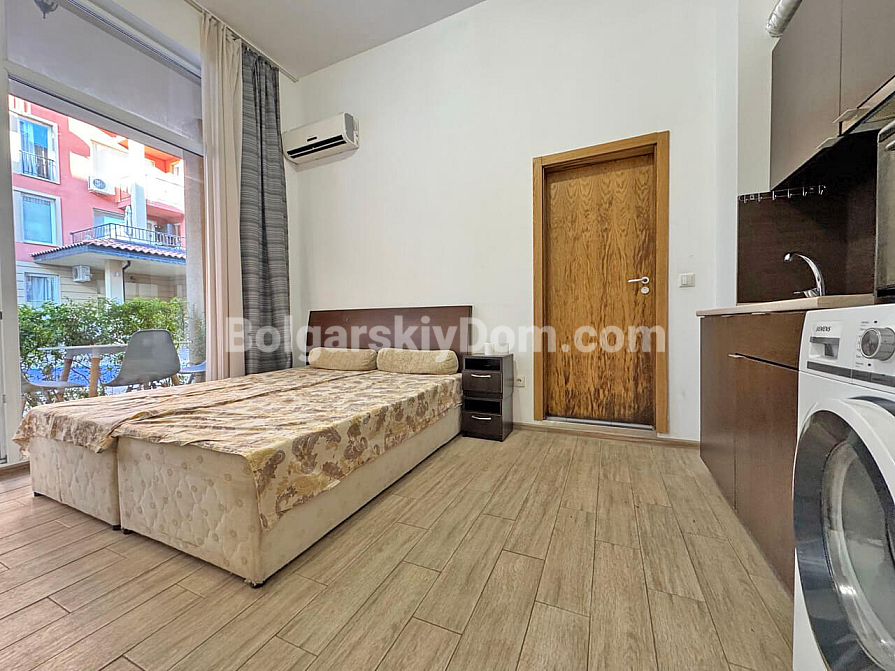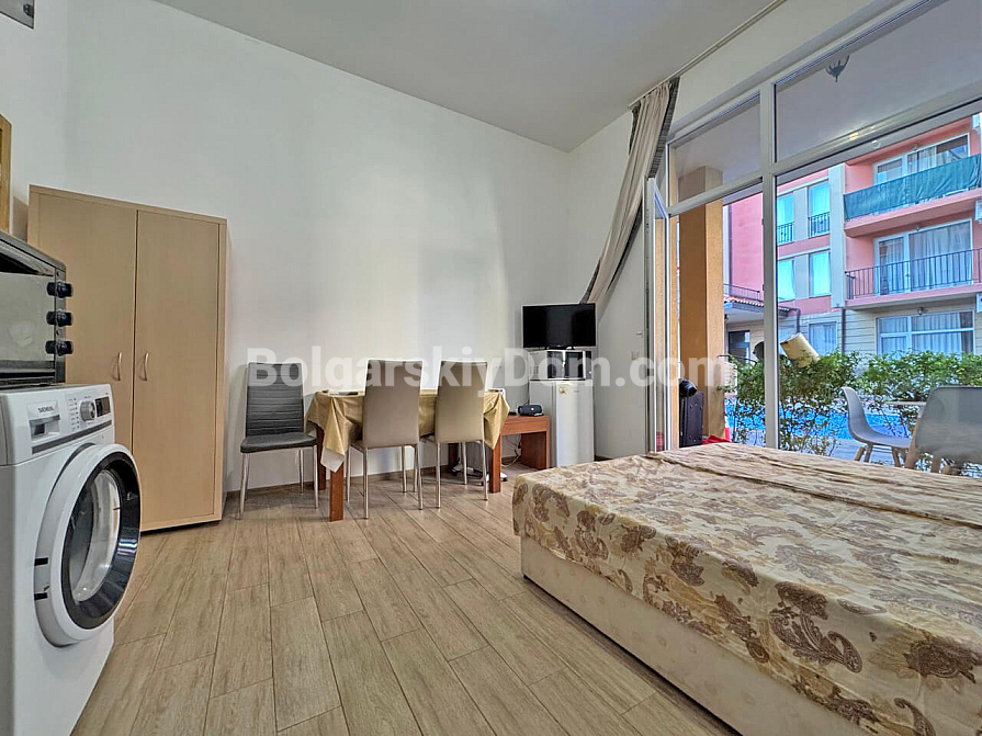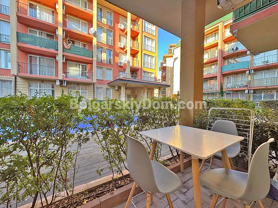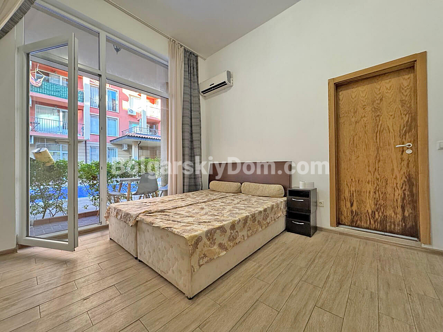 Світла та функціональна студія площею 37 м² у комплексі Sunny View Central на Сонячному березі стане вдалим варіантом для комфортного відпочинку біля моря. Апартамент розташований на 1 поверсі, що забезпечує зручний доступ без зайвих сходів чи очікування ліфта. Простір квартири дозволяє зручно організувати кухонну частину, місце для обіду та затишну зону для сну й відпочинку. Особливої привабливості апартаменту додає вид на басейн, який відкривається з тераси та створює приємну курортну атмосферу. Завдяки вдалому плануванню квартира виглядає просторою та зручною як для сезонного проживання, так і для літнього відпочинку.