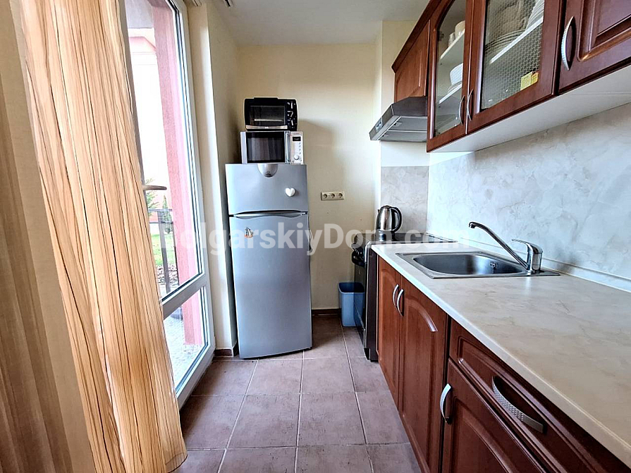 У портфоліо Болгарського Дому з’явилася простора новинка для тих, хто планує переїзд або якісний відпочинок у Сонячному Березі. У комплексі Holiday Fort Noks продається студія з вражаючою площею 46 кв.м. Нестандартне планування дозволило зручно розподілити простір: передбачені спальне місце, зона відпочинку з диваном та повноцінний кухонний блок в окремій ніші. Квартира розташована на високому першому поверсі, вікна виходять на тиху паркову зону. Меблі та кухня виготовлені з масиву дерева, що підкреслює надійність і затишок інтер’єру. Наявність двох терас і повного комплекту техніки, включно з пральною машиною та великим холодильником, дозволяє заїхати одразу після угоди. Бажаєте дізнатися більше про цю пропозицію або записатися на онлайн-перегляд? Чекаємо на ваш дзвінок!