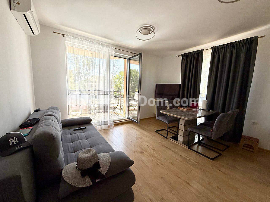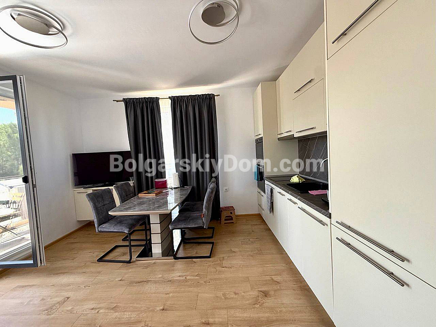 Компанія Bolgarskiy Dom представляє лот у комплексі Aphrodite Green — одному з найстильніших і найзеленіших комплексів курорту. Якщо ви шукаєте баланс між близькістю до моря та приватністю, ця трикімнатна квартира на третьому поверсі стане надійною основою для життя. Площа 77 кв.м дозволила створити функціональний простір з двома ізольованими спальнями та світлою вітальнею. Об’єкт передається новим власникам повністю укомплектованим: ремонт виконано під ключ, а меблі й техніка вже включені у вартість. Це звільняє вас від необхідності контролювати закупівлю обстановки чи шукати підрядників — житло повністю готове до прийому гостей або вашого особистого переїзду.