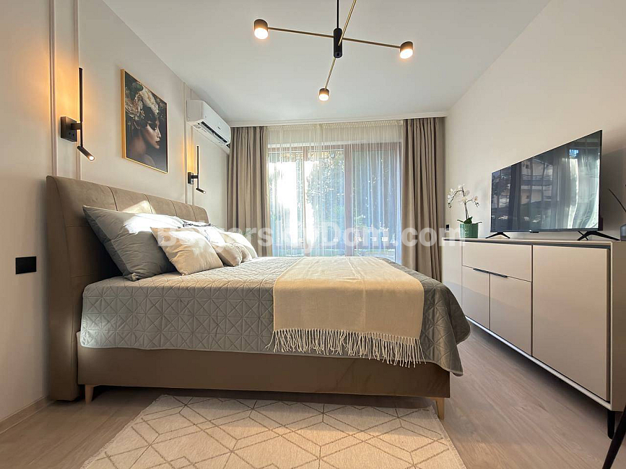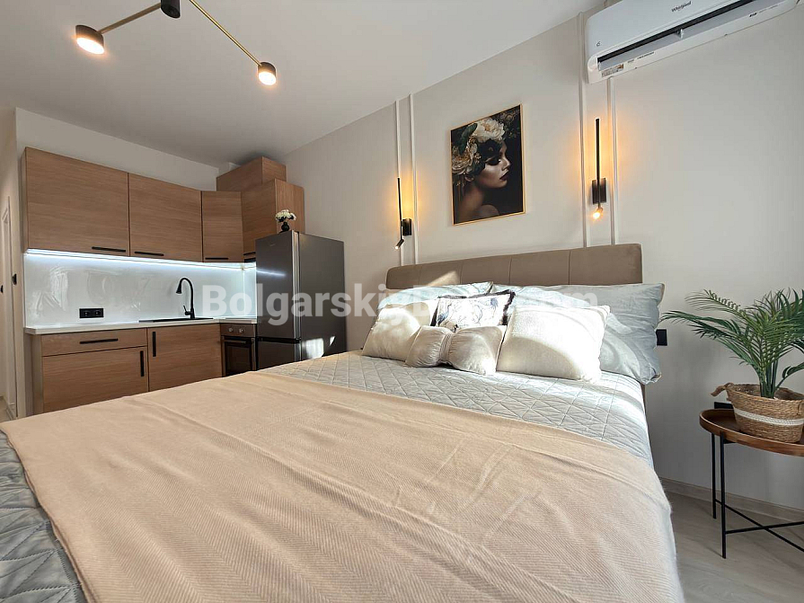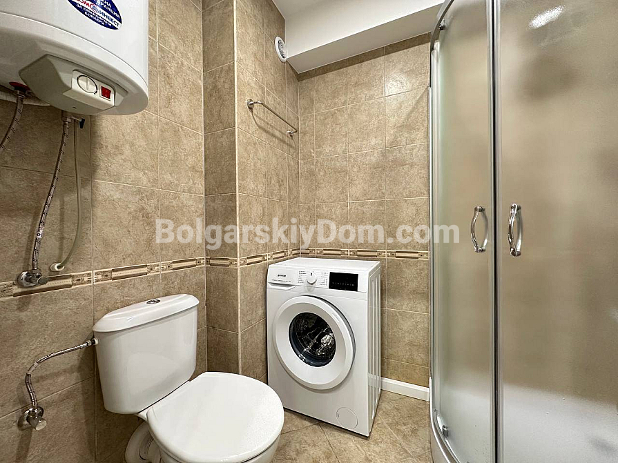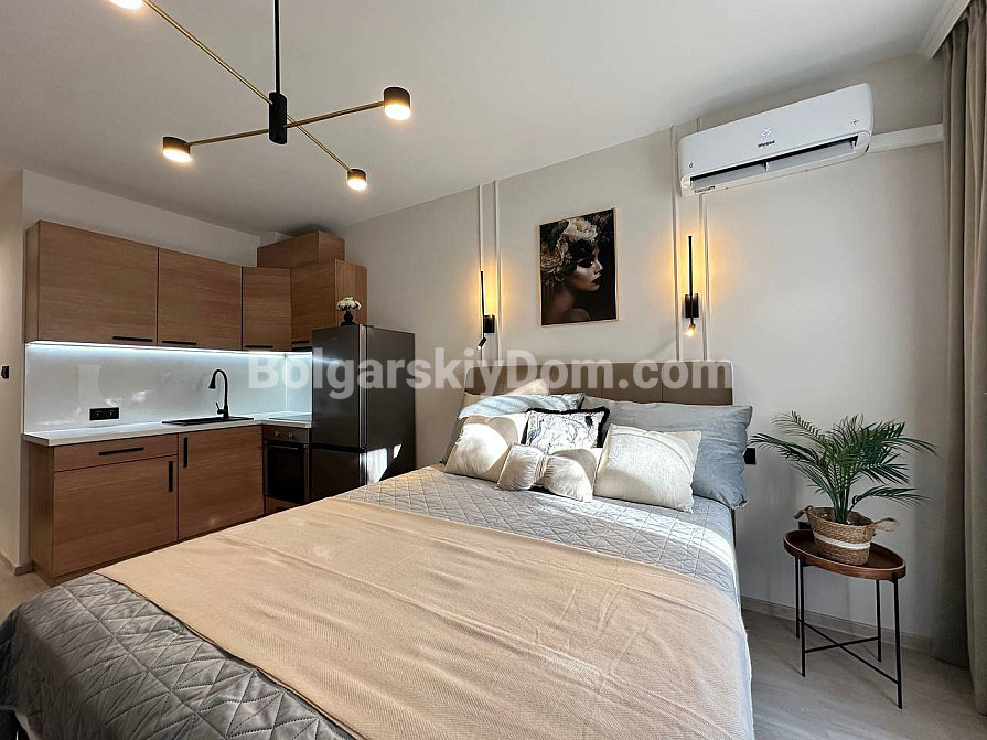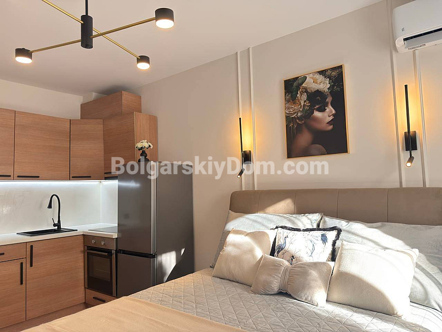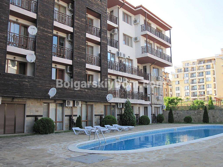 Шикарна ексклюзивна пропозиція від агентства "Болгарський дім " - стильна і затишна квартира-студія з атмосферою справжнього курорту. Апартамент на партері з прямим виходом у внутрішній двір комплексу до басейну — рідкісне і дуже зручне рішення. Простора тераса з видом на пальми і квітучі магнолії створює відчуття відпочинку в хорошому середземноморському готелі. Ранкова кава під шелест листя і м'яке морське повітря — тут це стане вашою повсякденністю. У квартирі виконаний свіжий ремонт: пофарбовані стіни, покладений ламінат. Інтер'єр продуманий до дрібниць: 40 кв.метрів простору організовані функціонально, зручно і естетично. Повністю оновленi меблі: ліжко з ортопедичним матрацом, комод, столовий гарнітур, дзеркальна шафа в передпокої і сучасні світильники. Нова техніка готова до експлуатації: телевізор, кондиціонер, пральна машина, холодильник, душова кабіна.