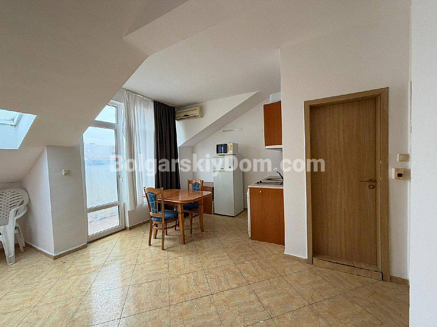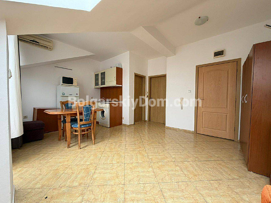 Комплекс Браво 5 розташований у центральній, але тихій частині Сонячного Берега всього за 500 метрів від піщаного пляжу. Будівля має Акт 16 та всі необхідні документи для швидкої угоди. У квартирі є невеликий затишний балкон, а планування дозволяє раціонально використовувати кожен метр площі. Інфраструктура району розвинена: поруч знаходяться супермаркети, кафе та автобусні зупинки, що працюють цілий рік. Команда Болгарський Дім готова організувати показ та надати повний розрахунок витрат на переоформлення права власності.